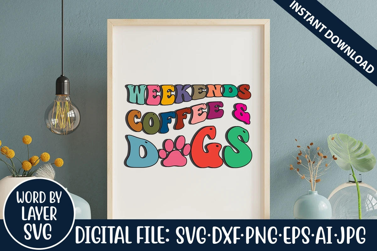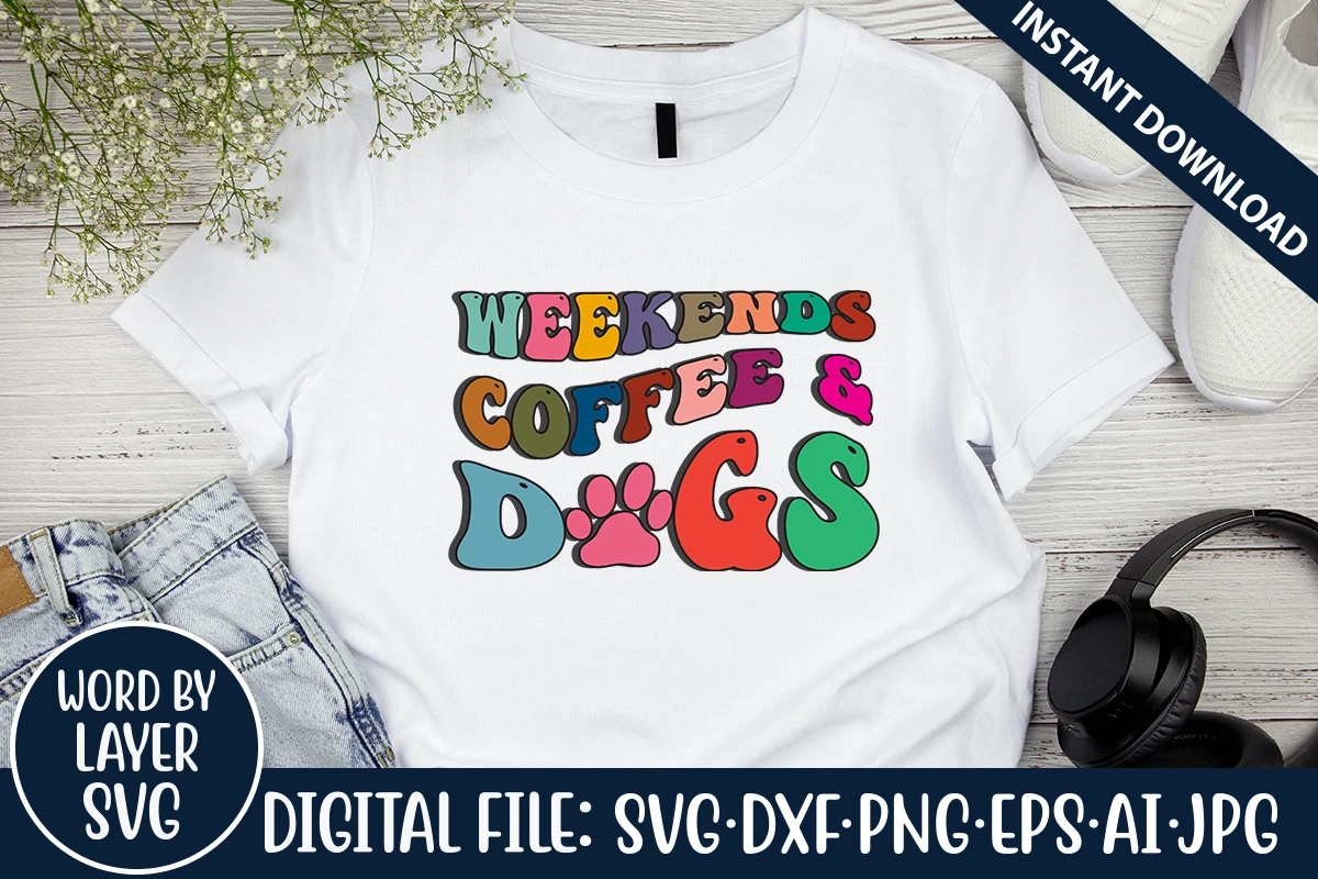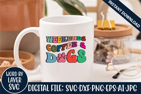 Weekends Coffee & Dogs Retro SVG Design, SVG Cut Files