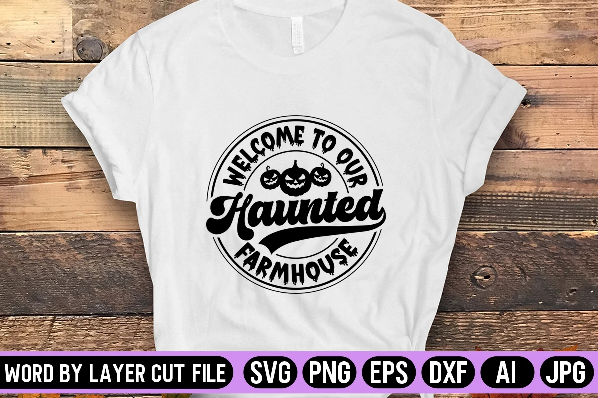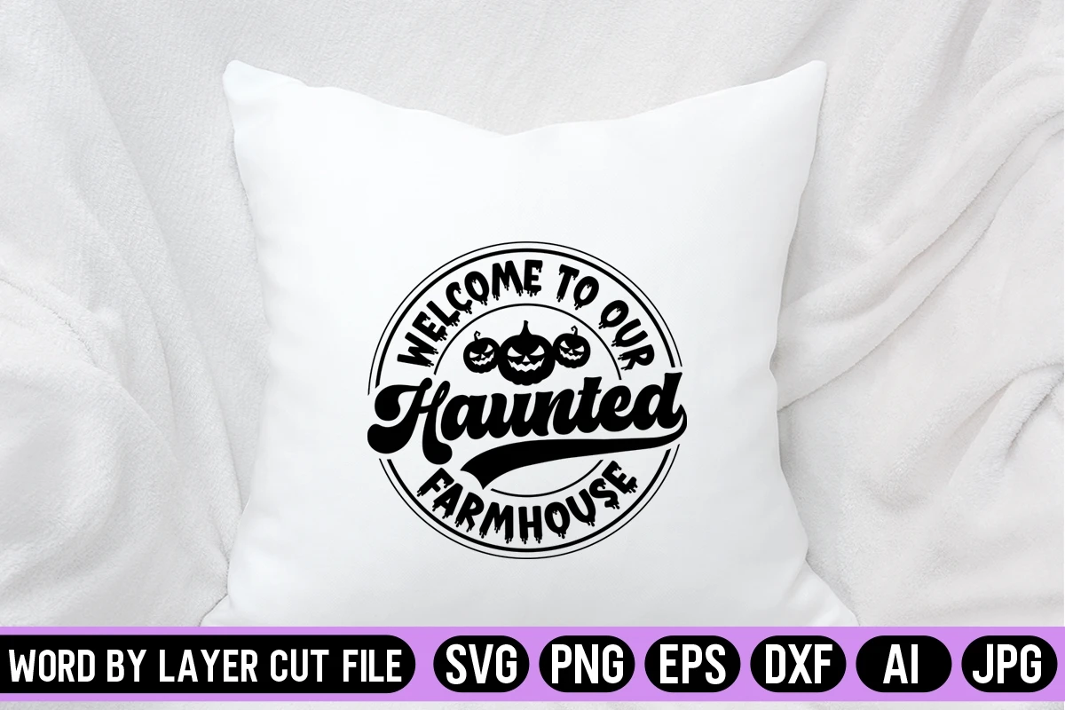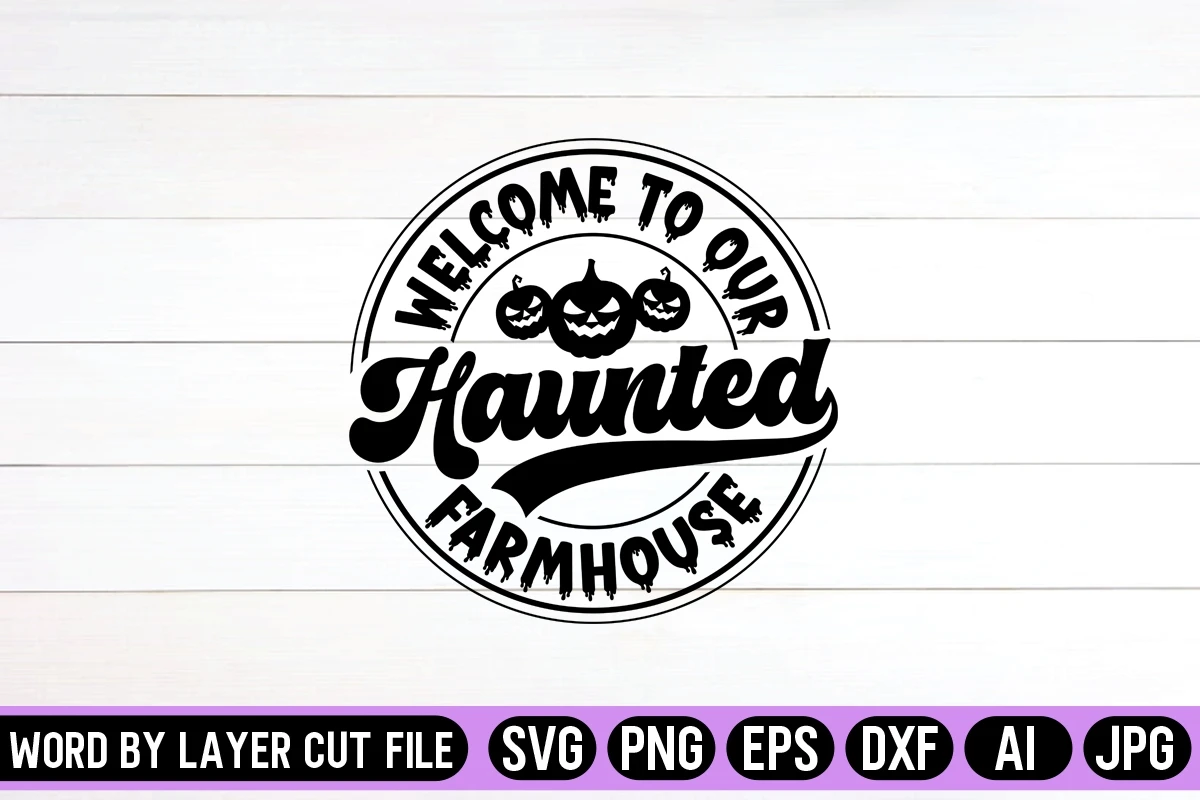 Welcome To Our Haunted Farmhouse SVG Round Sings Design