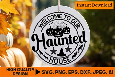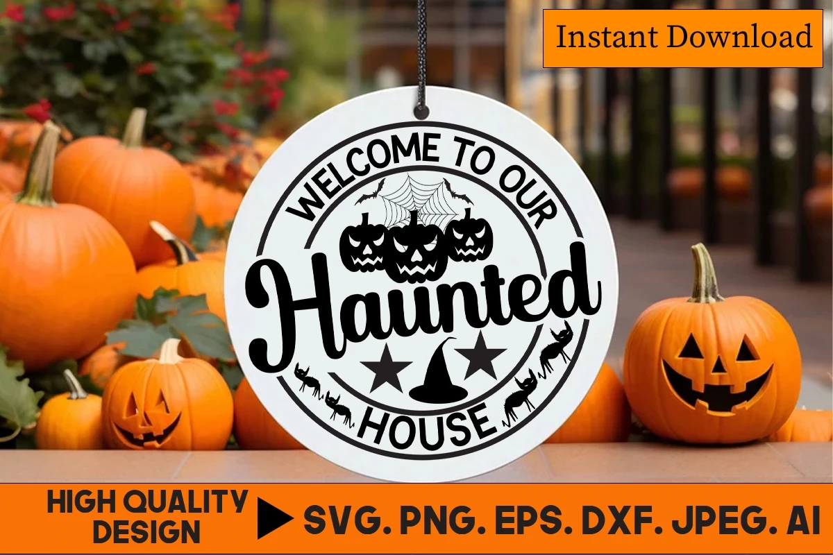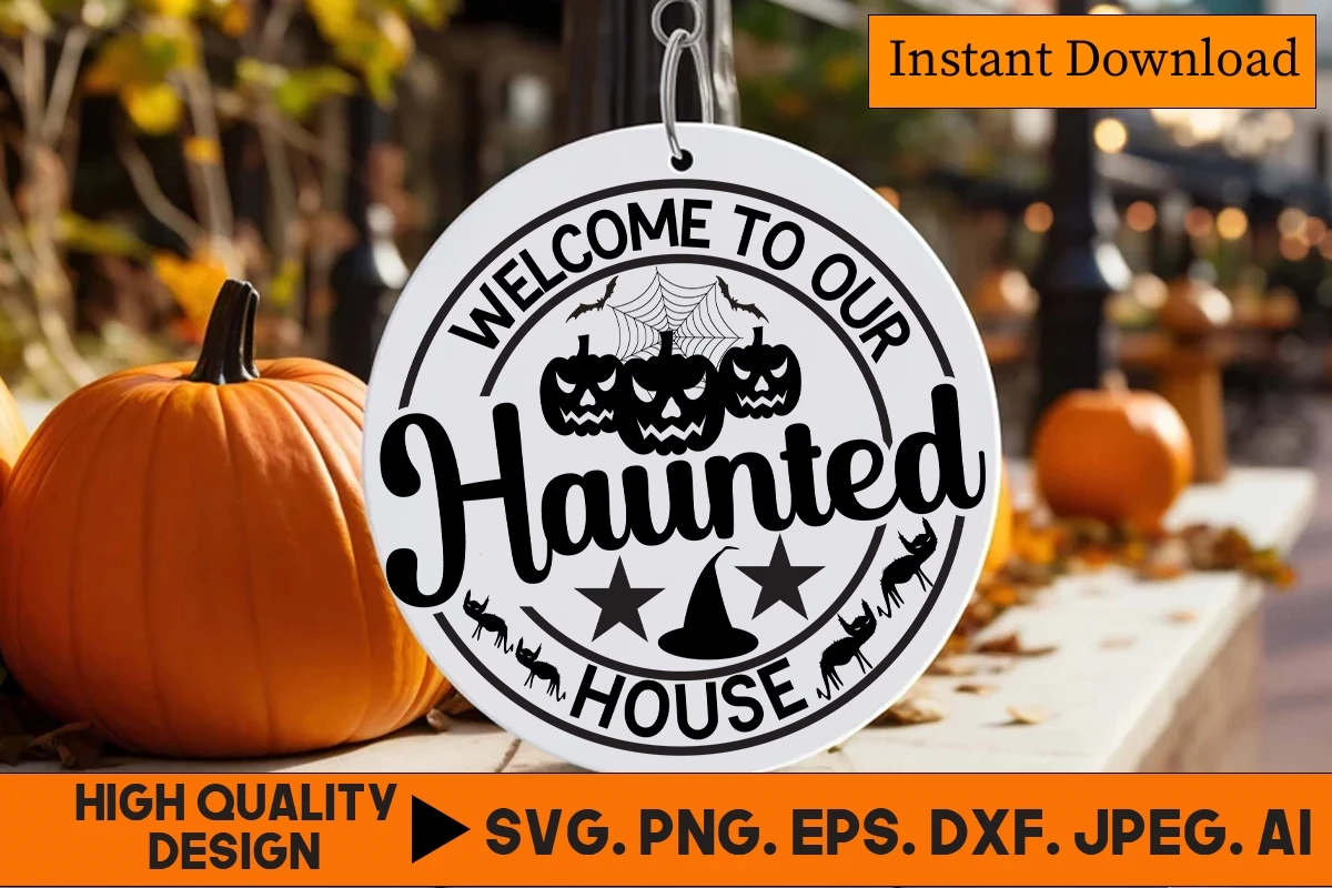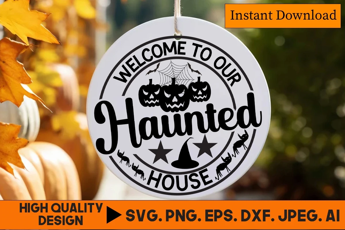 Welcome To Our Haunted House Halloween Round Sign SVG