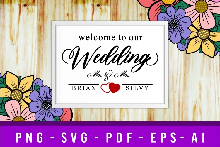 Welcome To Our Wedding Name Sign, Wedding Sign Quote Design SVG Cut Files