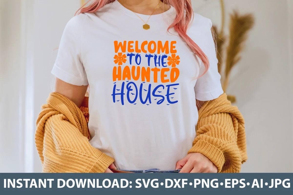 Welcome To The Haunted House Halloween Retro Vector Design