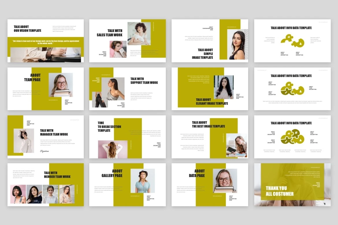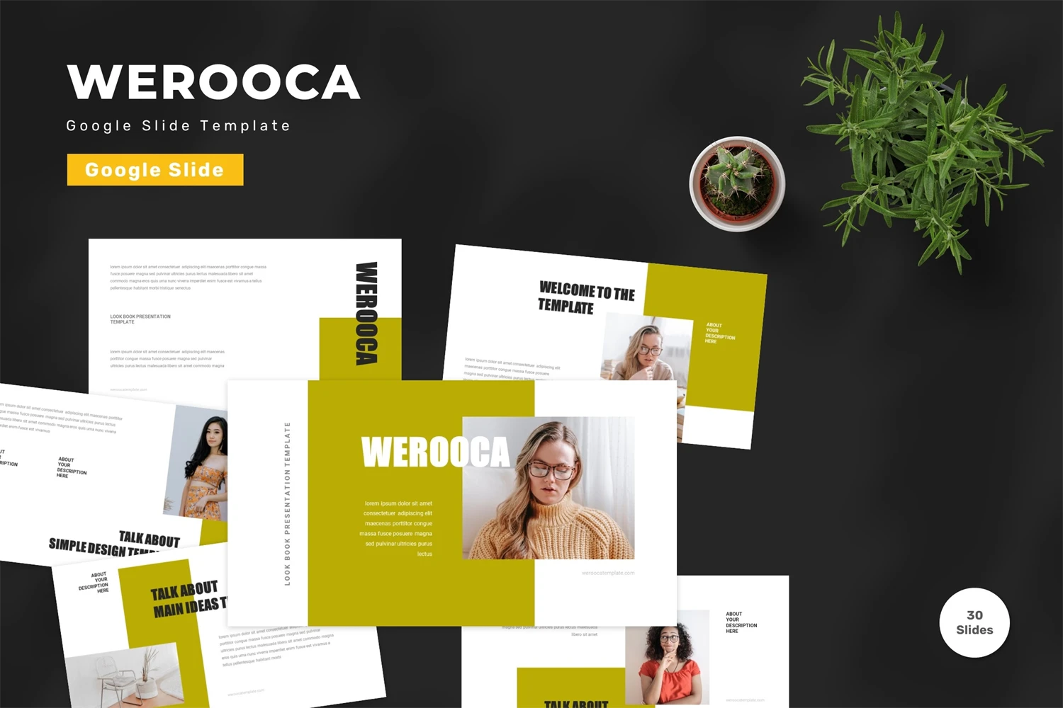 Get it now! **Werooca - Google Slide Template** for All Business and Personal Needs All elements on this template are editable; input your content, replace your image with a placeholder, change the color, and all presentations include an animated slide to present your slides.