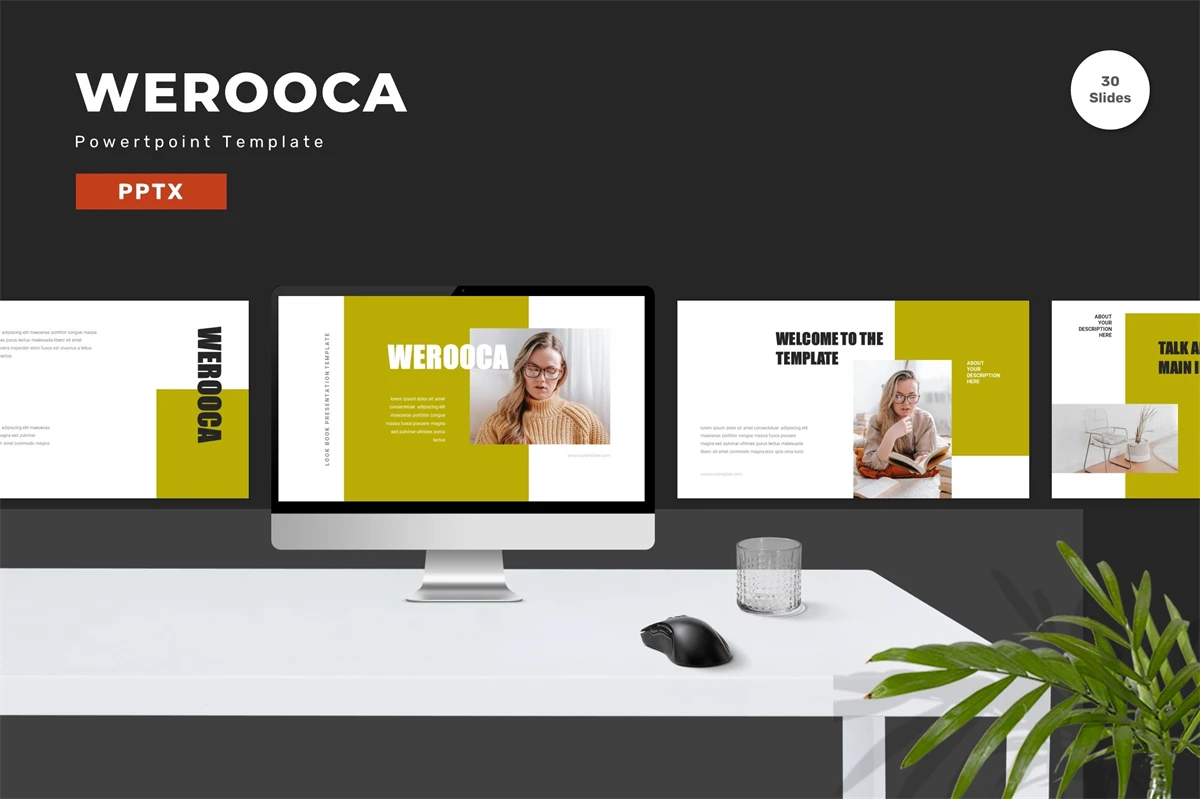 Get it now! **Werooca - Powerpoint Template** for All Business and Personal Needs All elements on this template are editable; input your content, replace your image with a placeholder, change the color, and all presentations include an animated slide to present your slides.
