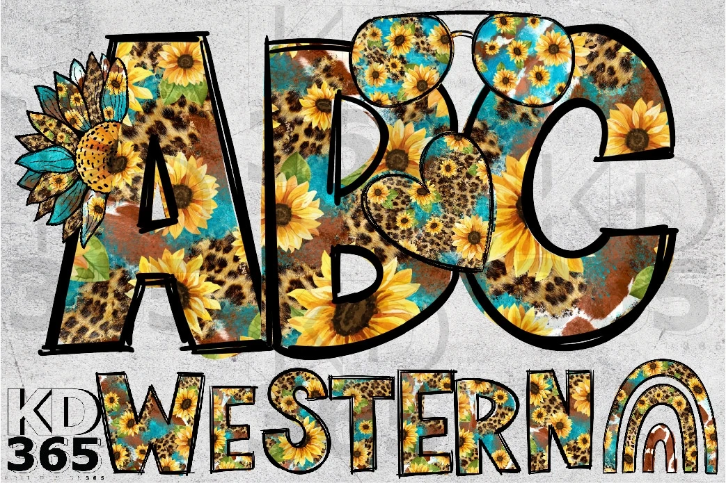 This Western Alphabet PNG Sublimation Design features a captivating combination of Leopard Cowhide Skin and Turquoise Texture.