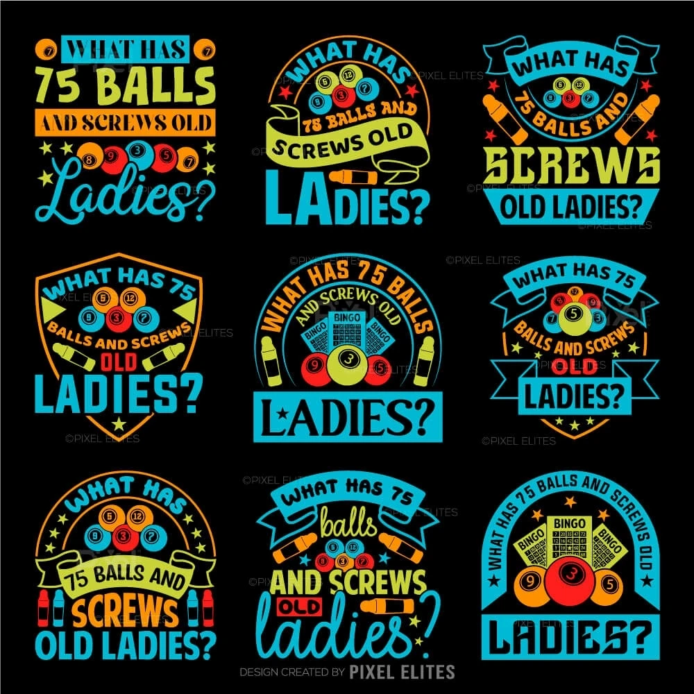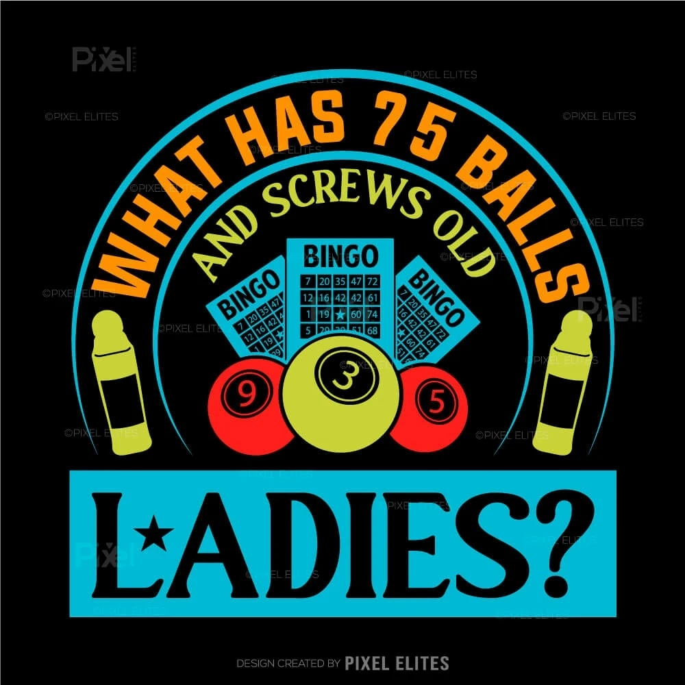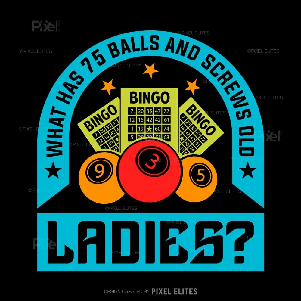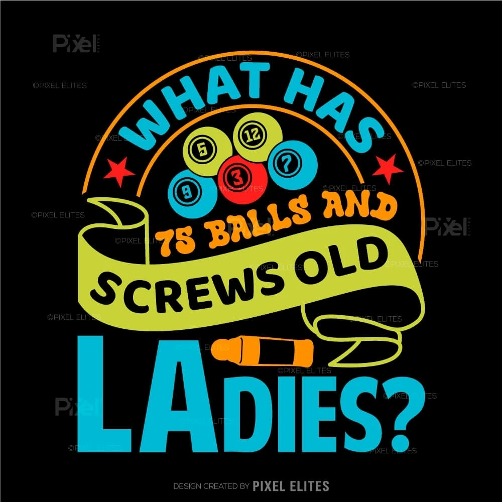 Add a humorous touch to your bingo apparel with our What Has 75 Balls and Screws Old Ladies SVG Cut File! This witty design is perfect for bingo lovers who appreciate a good laugh. Ideal for crafting custom T-shirts, mugs, and fun bingo-themed gifts, this versatile cut file will bring smiles to any bingo gathering.
