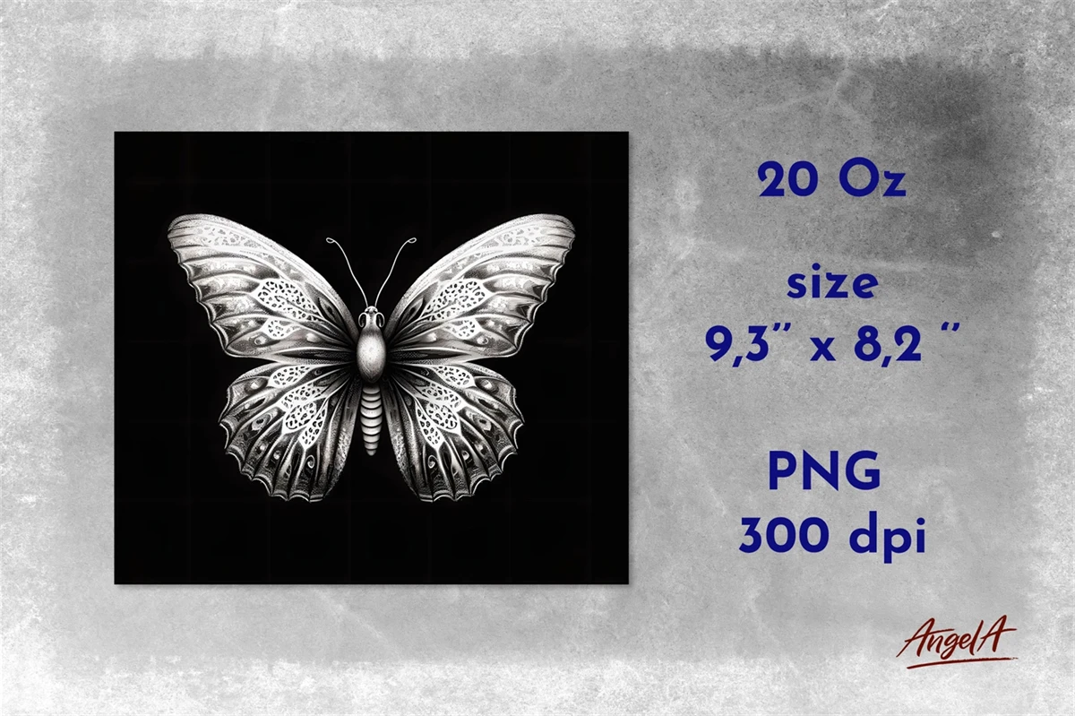 4 White butterfly tumbler wrap, sublimation tumbler designs will help you spice up your tumbler! It's perfect as a part of the decor of your party! In this bundle there are 4 20 oz butterfly sublimation designs. Each design has the following dimensions 9,3'' x 8,2''.