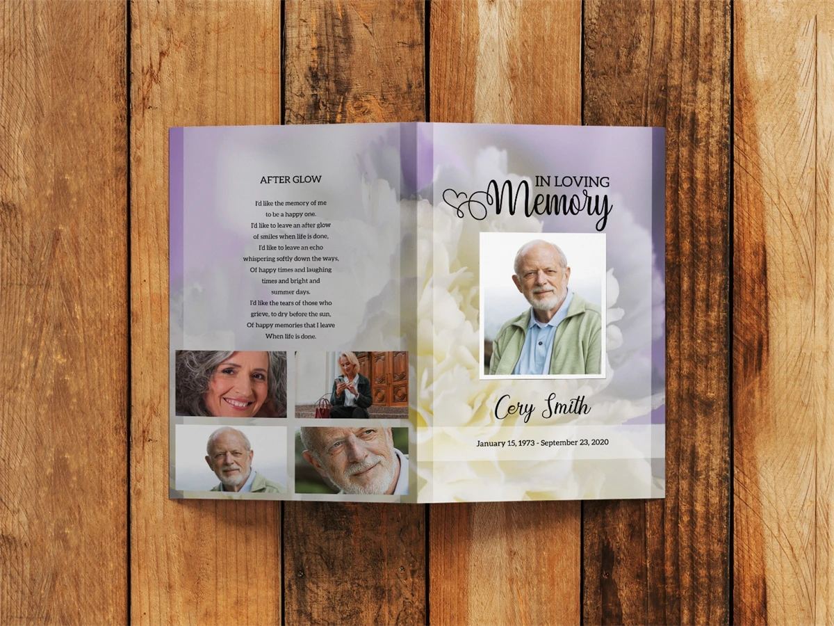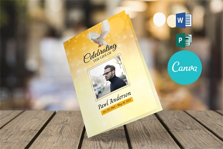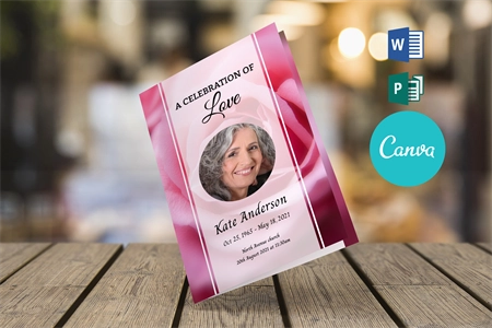 8.5x11 Inches Word, Publisher and CANVA Funeral Program Template.