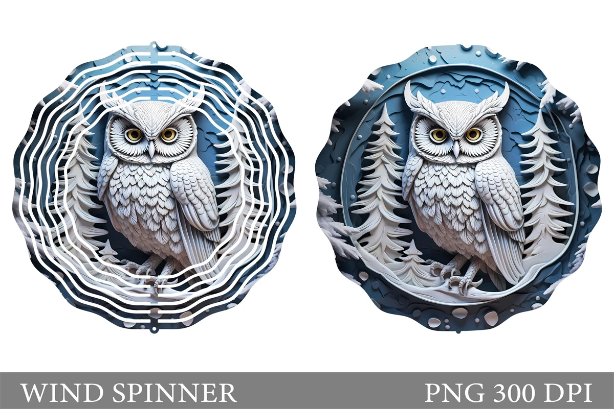 White Owl Wind Spinner Design. Winter Owl Wind Spinner