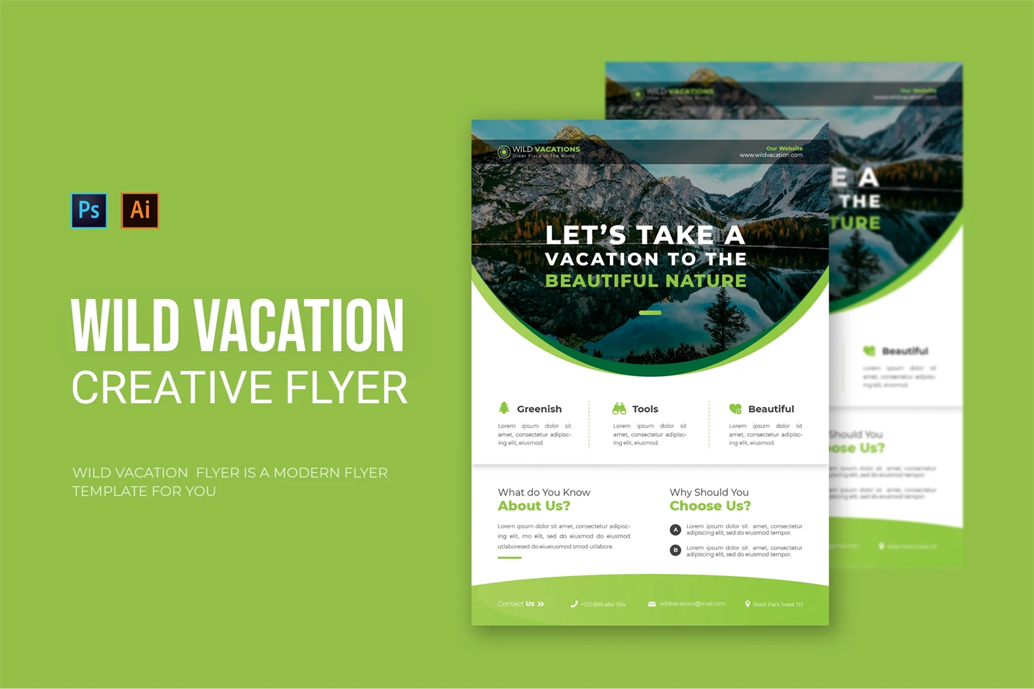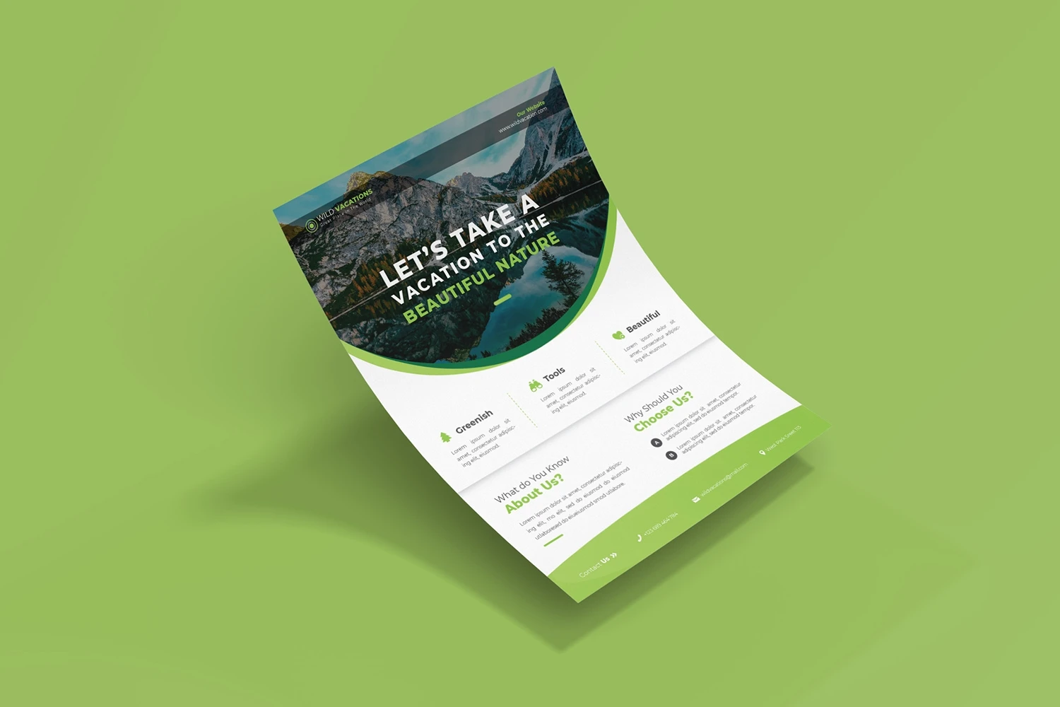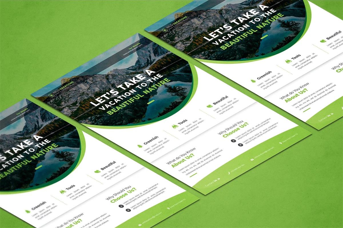 Wild Vacations - Flyer. This Flyer template is designed for your company's business needs. very clean and elegant, and also easily edited and adjusted to your liking