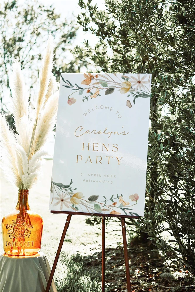 WILDE Wildflower Hens Party Welcome Sign template,Canva