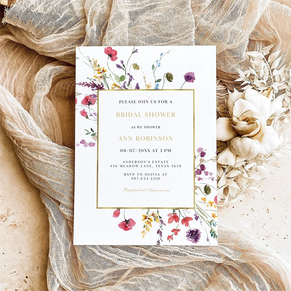 Wildflower Bridal Shower Invitation Template, Summer Spring