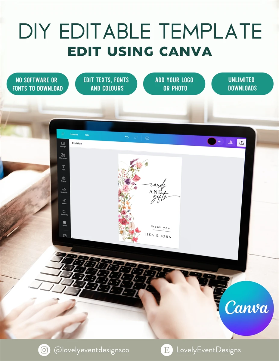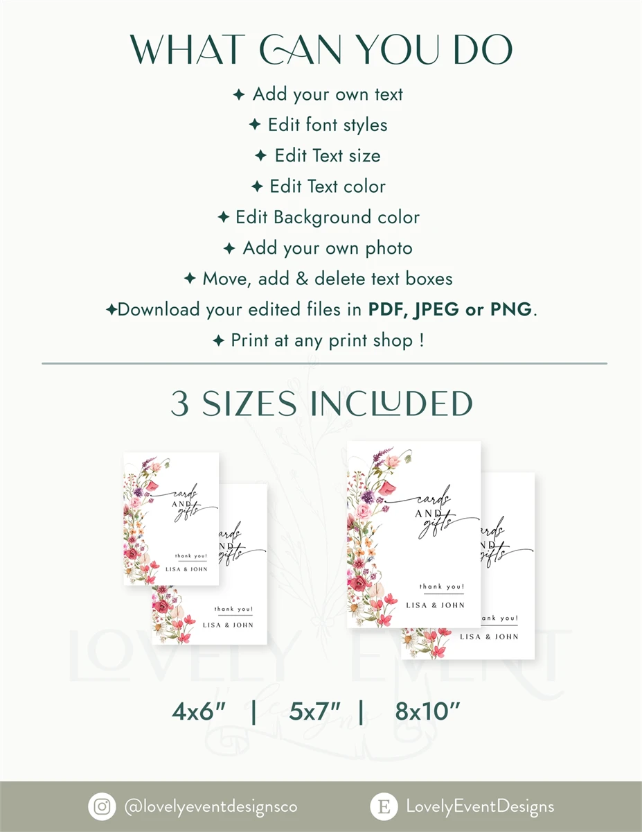 Wildflower Cards and Gifts Sign Printable, Wildflower Weddin
