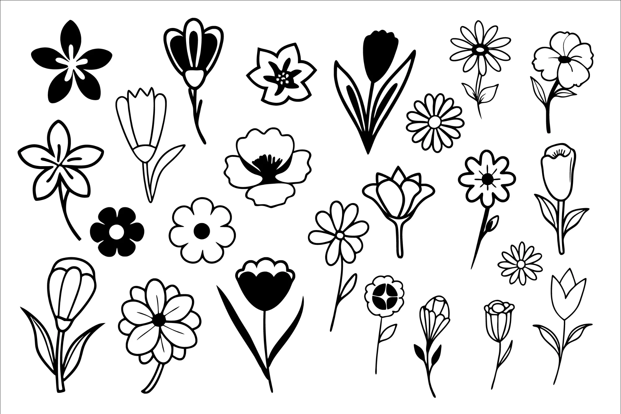 Wildflower Line Art Bundle SVG PNG, Front & Back T-shirt Design, Hoodie, Sweatshirts, Etc