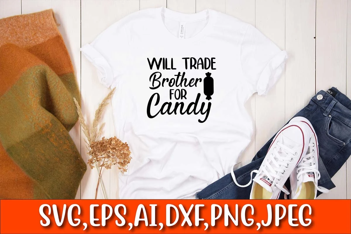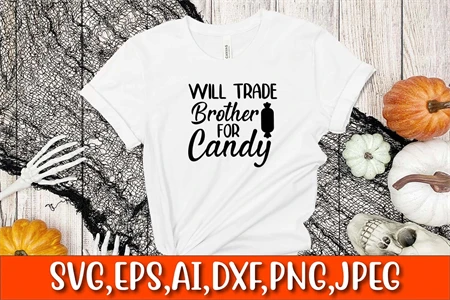 Will Trade Brother For Candy SVG Design, Halloween svg, Hall