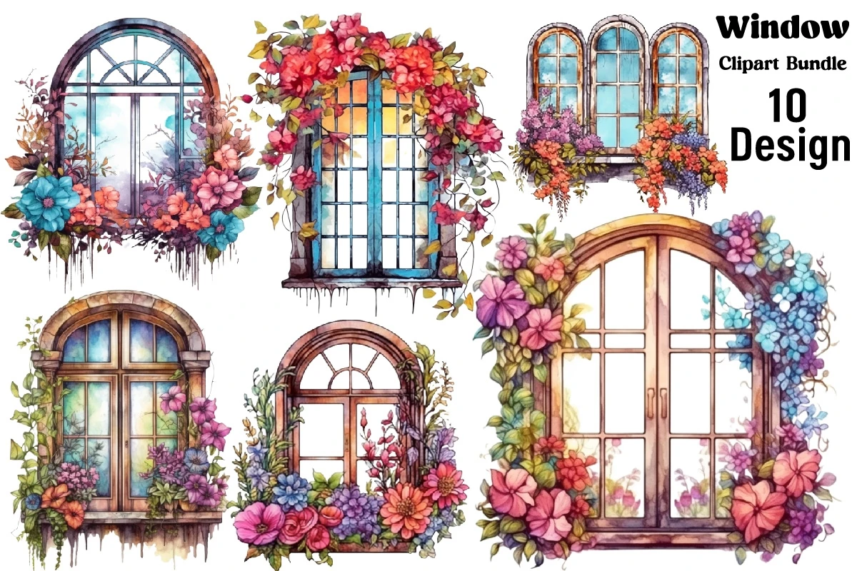 Watercolor Windows Clipart PNG Bundle