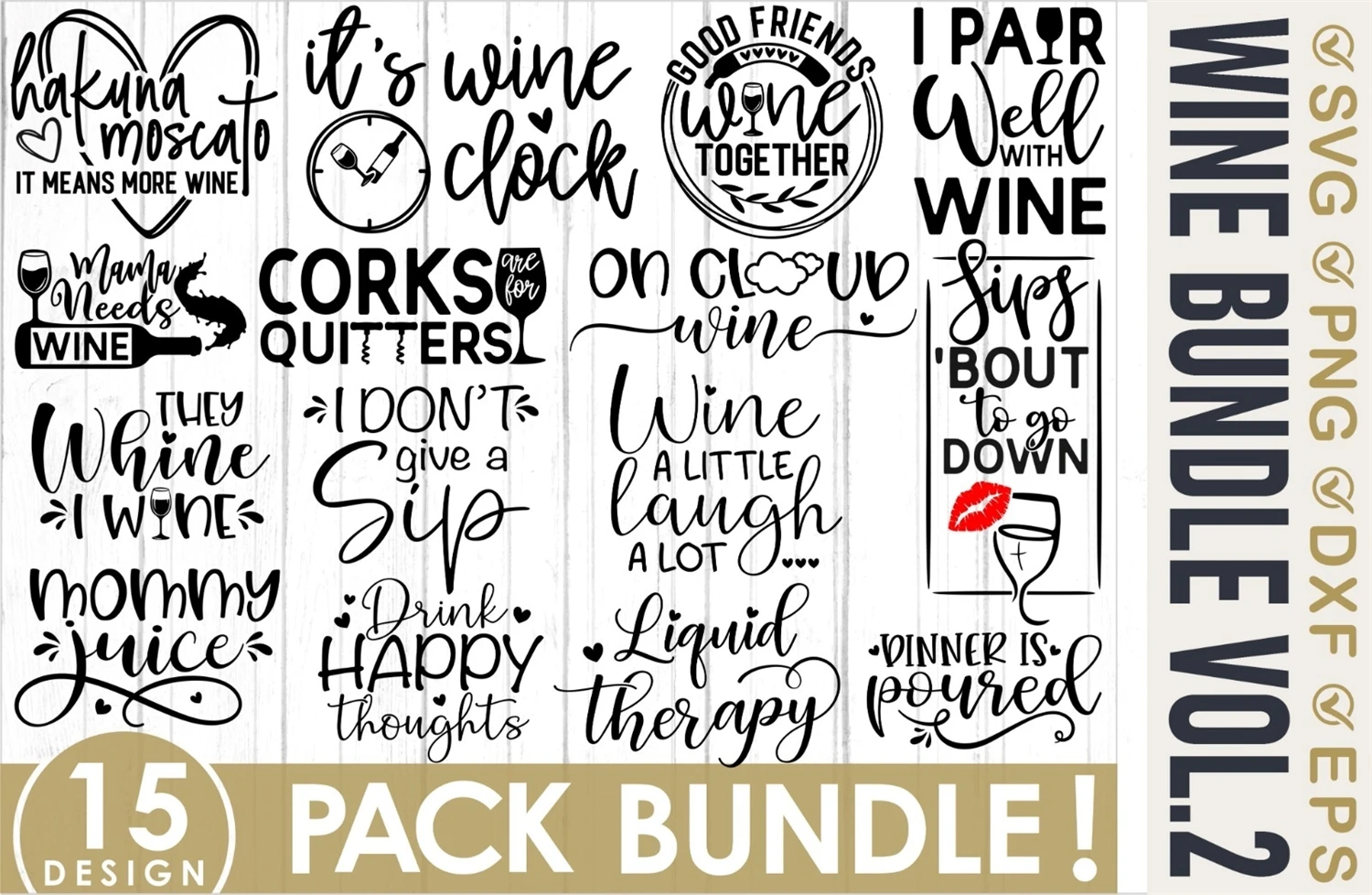 Wine Quote Svg Bundle, Wine Lover Quotes, Wine Glass, Funny