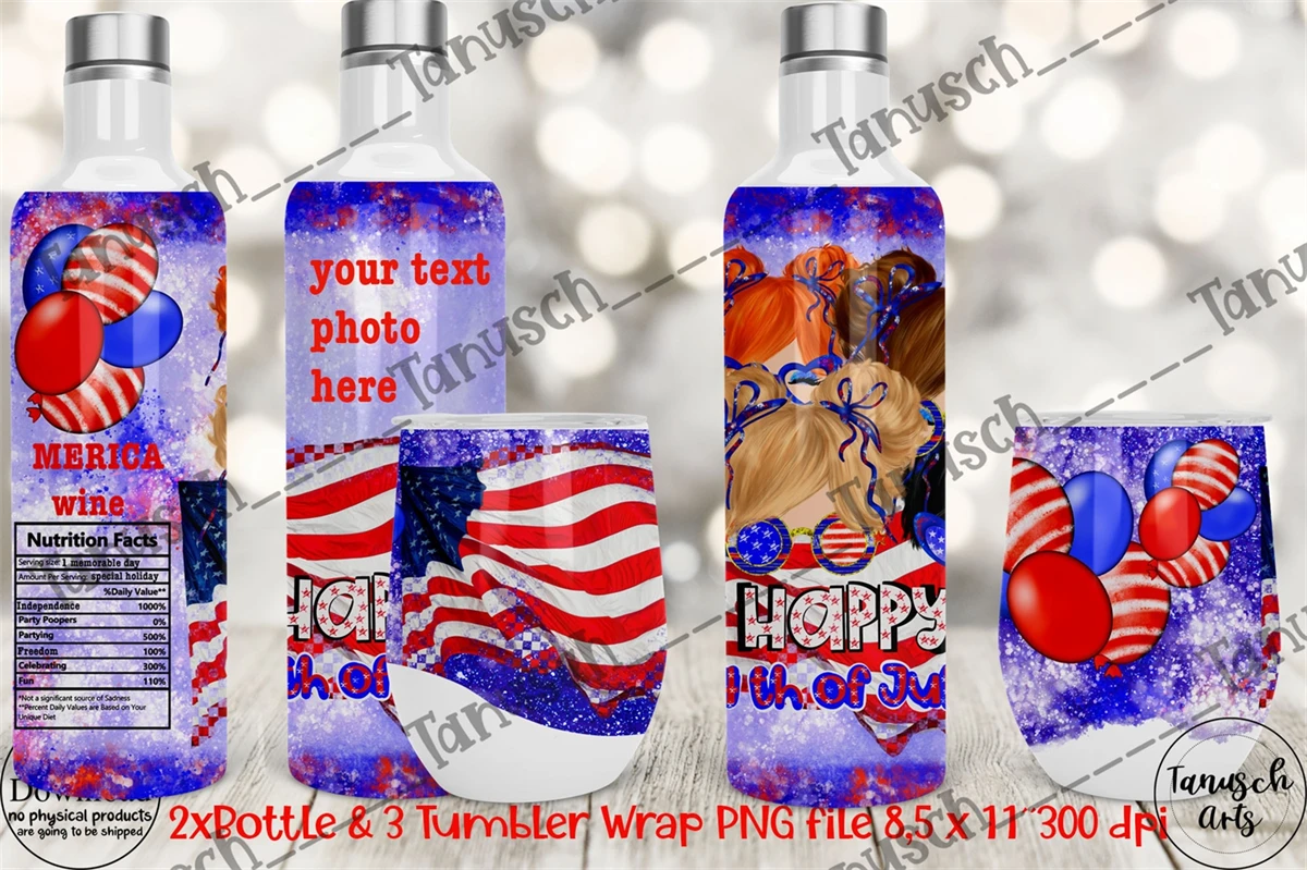 12 oz Wine Tumbler and Wine Bottle 4th of July Design PNG Sublimation Design 4 Templates in one Patriotic Set!