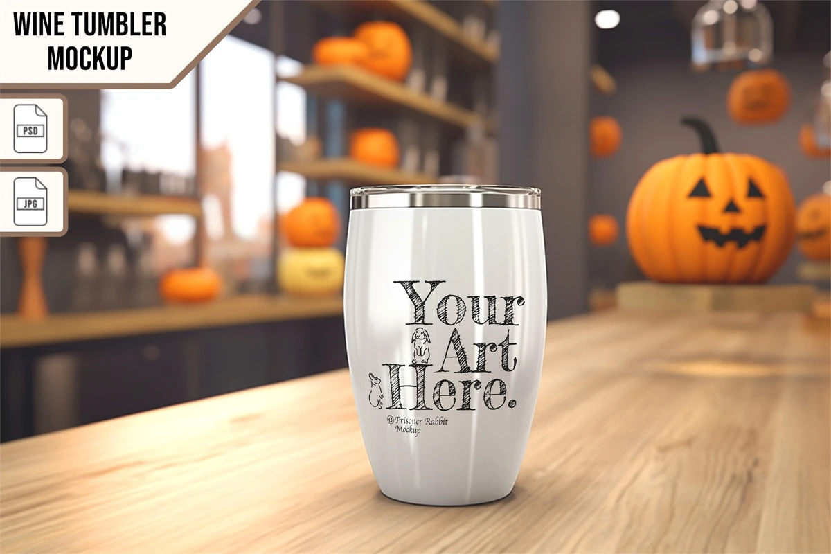 Wine Tumbler mockup with Photoshop (PSD) template for drawing design, pattern, svg, art and graphic designs.