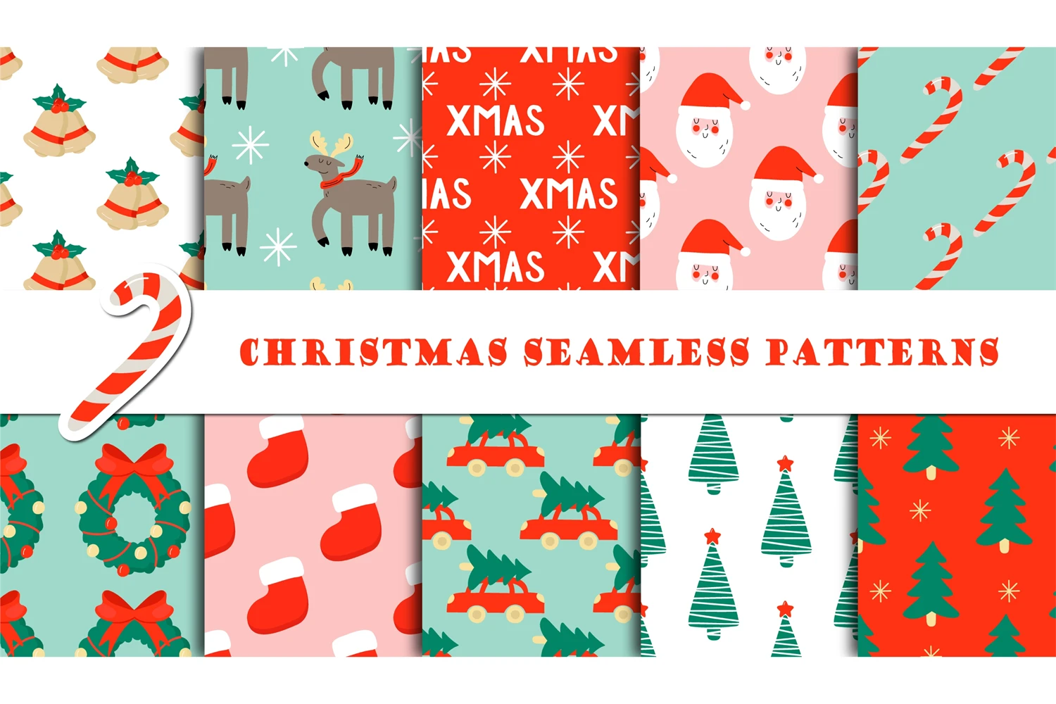 10 Beautiful Hand drawn Winter seamless patterns, Christmas and New Year Digital Papers. Digital Papers Collection.
