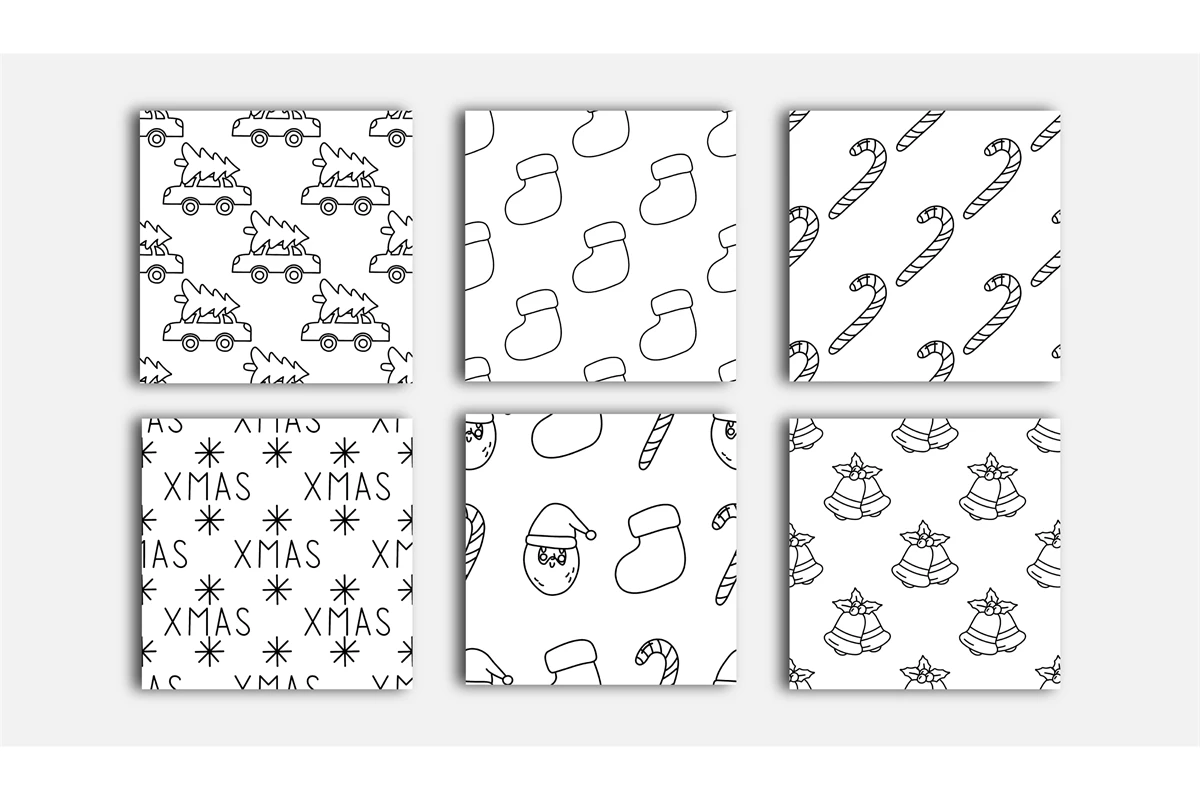12 Beautiful Hand drawn Winter seamless patterns, Christmas and New Year Digital Papers. Christmas trees, Santa Claus, deer and snowflakes texture Digital Papers Collection. Winter Abstract Print Sublimation