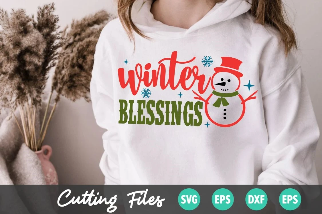 Winter Blessings SVG, Snowman SVG, Christmas Svg, Winter SVG