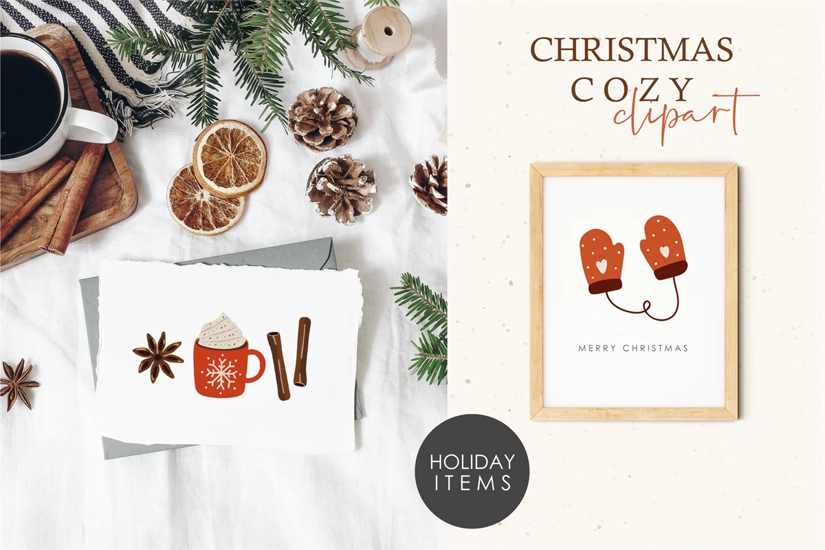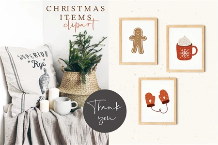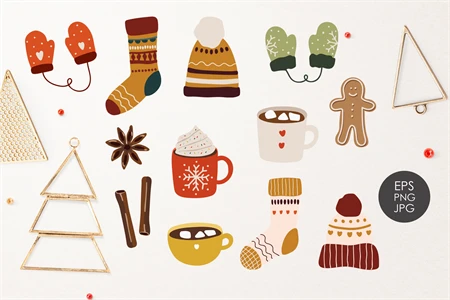 Winter clipart, Abstract winter elements clipart, Digital holiday items, New Year items PNG, Cozy winter clipart
