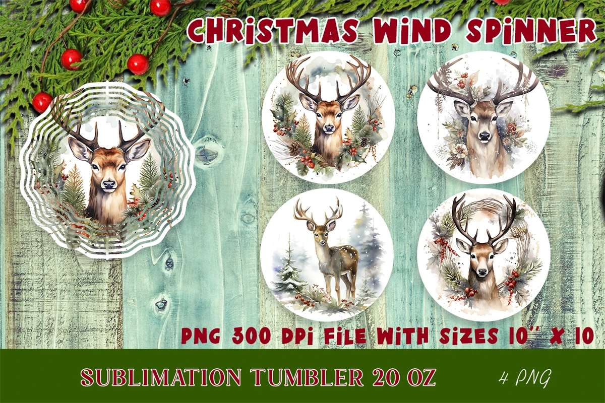 For all Christmas lovers! It was a lot of fun creating this cute Reindeer Wind Spinner sublimation! Christmas flowers Vintage clipart. Colorful, festive and fun!