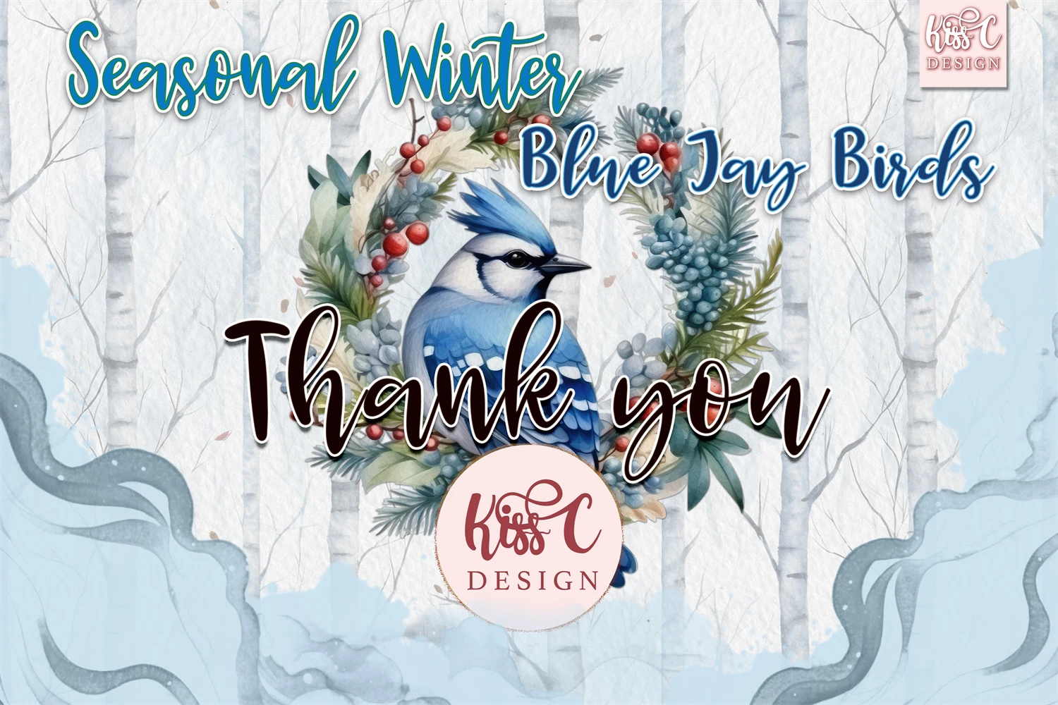 Realistic watercolor Blue Jay Bird in the winter forest PNG sublimation.