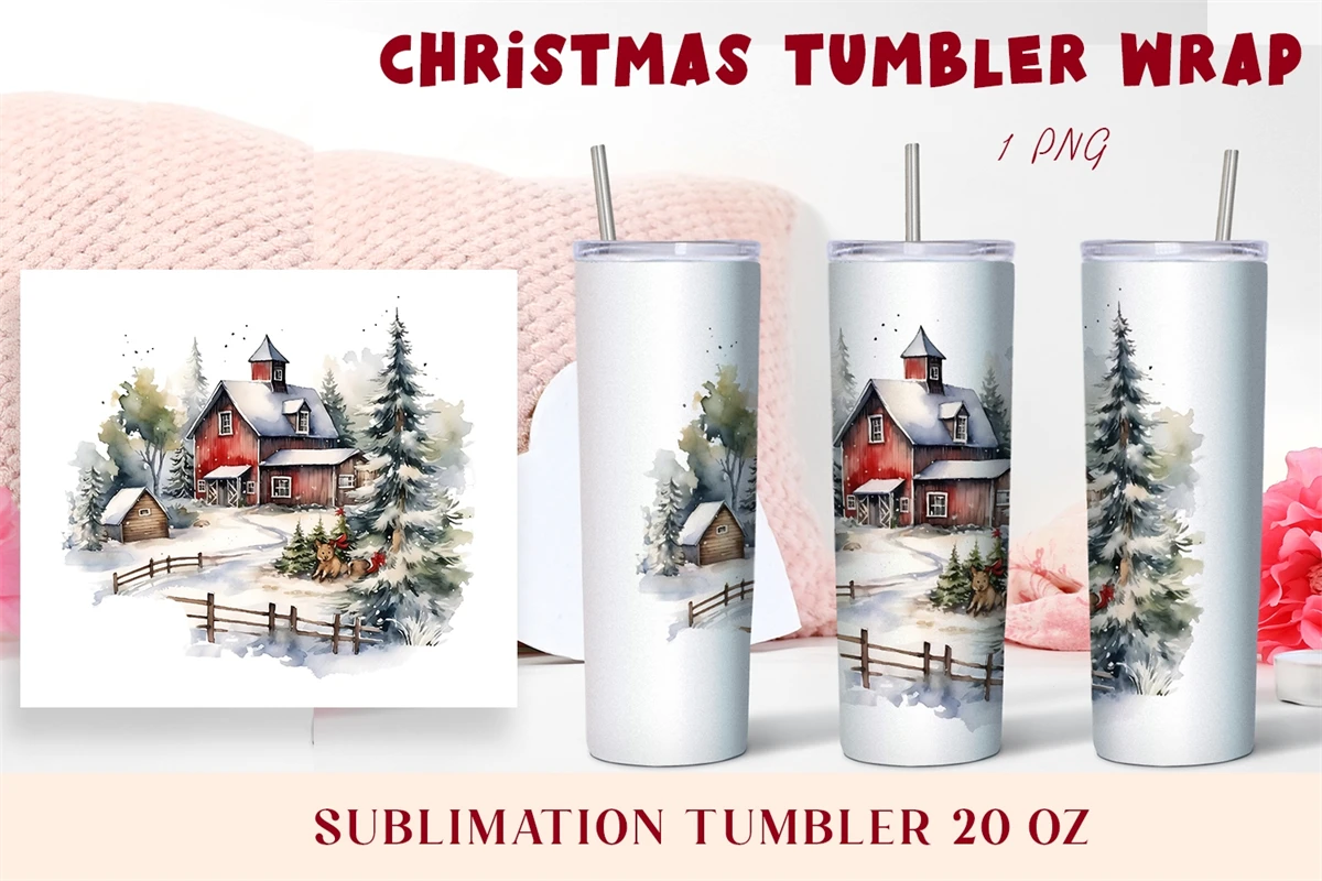 Watercolor Cute Christmas haus Tumbler Wrap 20 oz