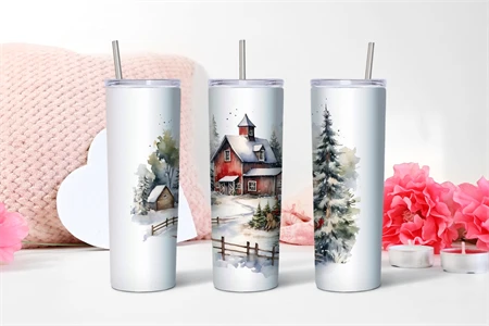 Winter tumbler wrap design Christmas haus tumbler sublimation png