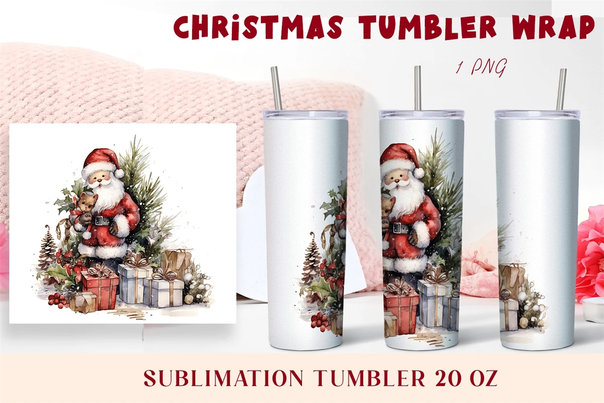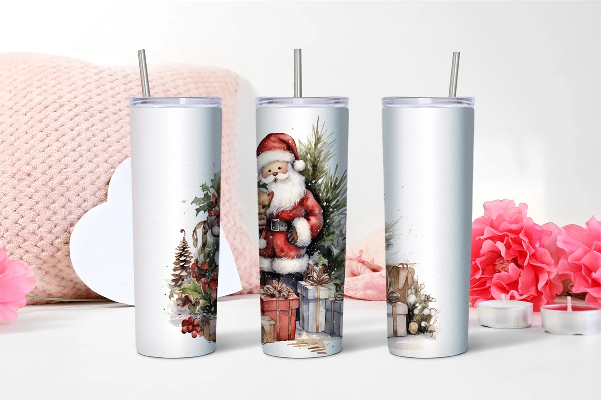 Watercolor Cute Christmas haus Tumbler Wrap 20 oz