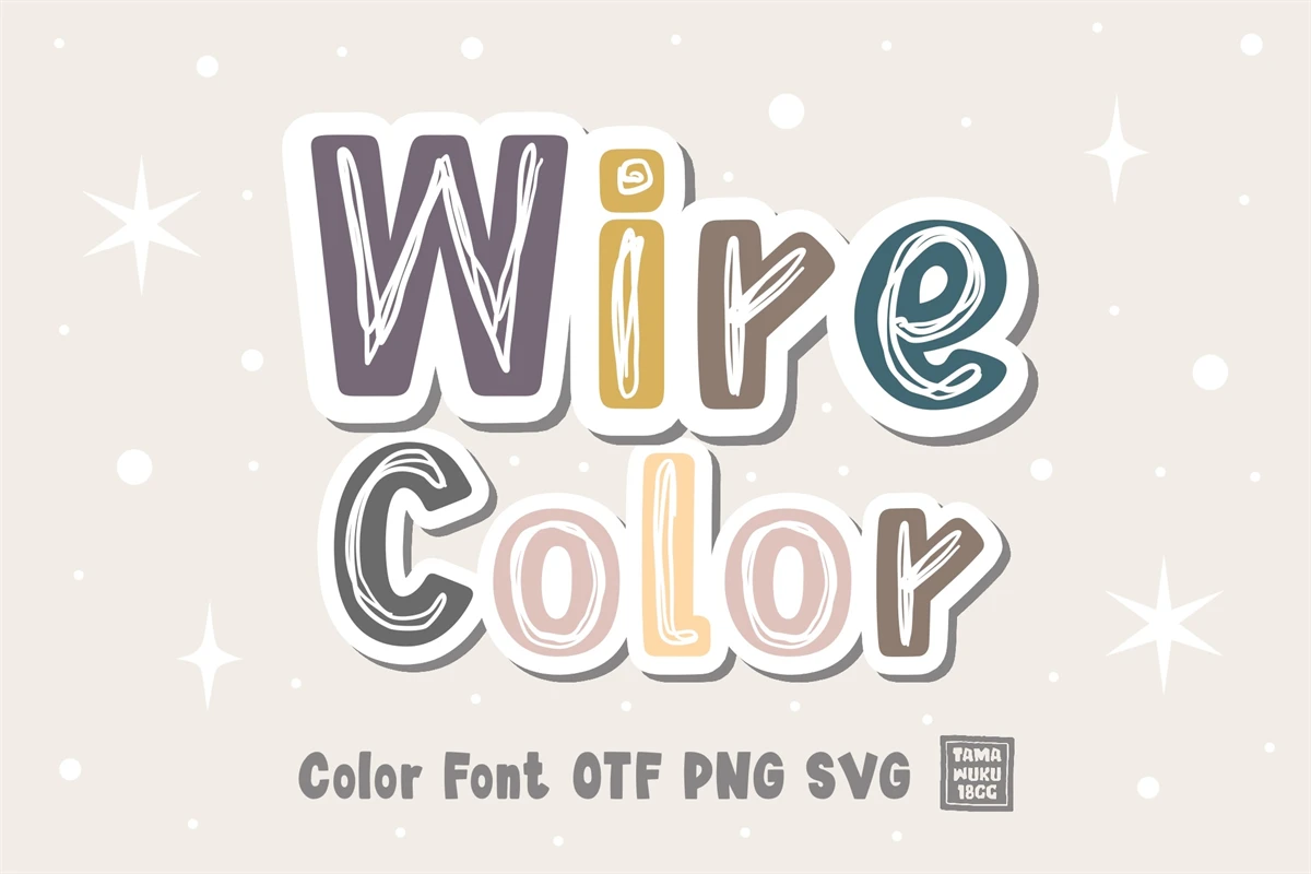 Wire Color is a sweet color font. This unique font grabs attention in print, packaging, and social media, making it perfect for creating a distinctive and memorable visual impact.