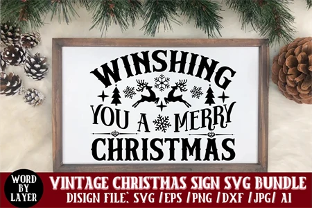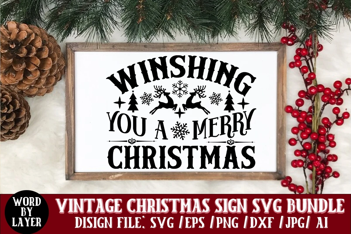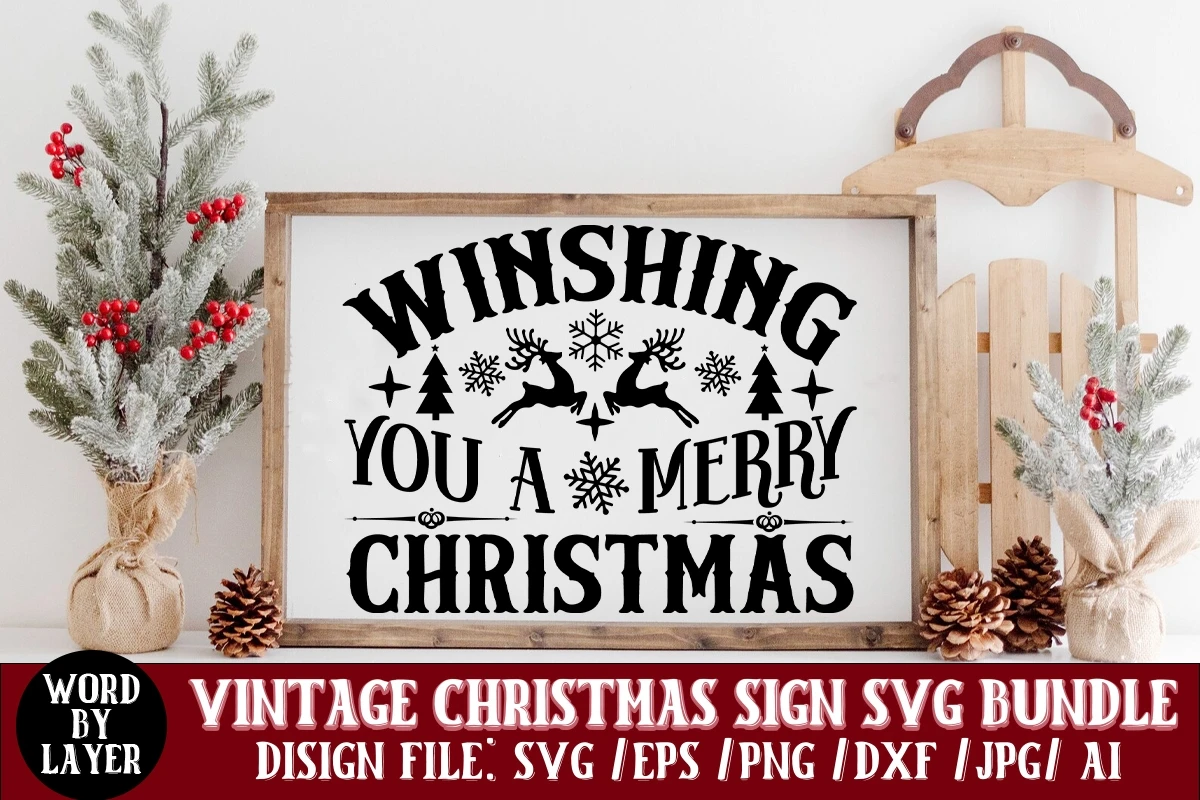 Wishing Merry You A Christmas Vintage Christmas Sign SVG