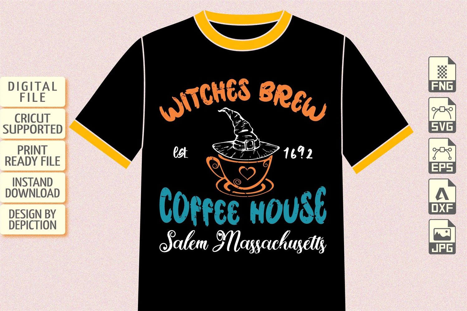 Witches Brew Est 1692 Coffee House Salem Massachusetts T-Shirt Design