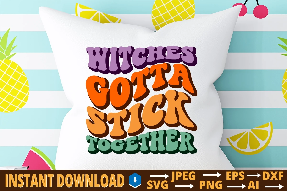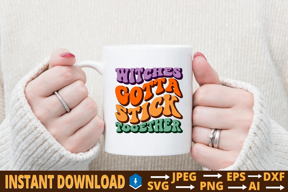 Witches Gotta Stick Together Retro Halloween Cut File Design