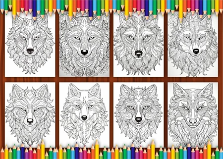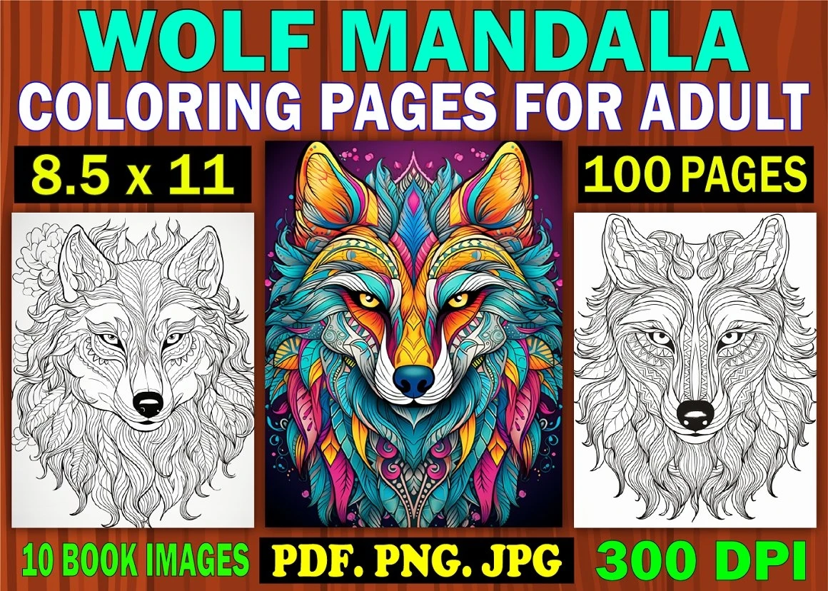 Wolf Mandala Coloring Page for Adult 4 : Word Searches, Color- By-Numbers, Puzzles, Count-and-Color,