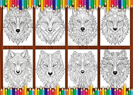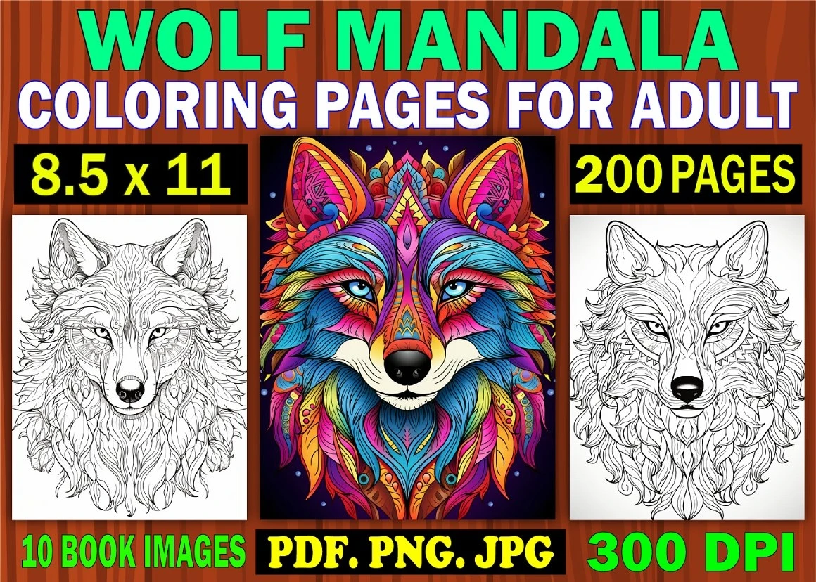 Wolf Mandala Coloring Page for Adult 5 : Word Searches, Color- By-Numbers, Puzzles, Count-and-Color,