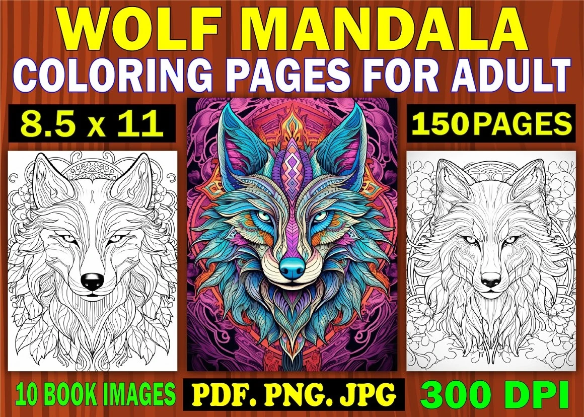 Wolf Mandala Coloring Page for Adult 6 : Word Searches, Color- By-Numbers, Puzzles, Count-and-Color,