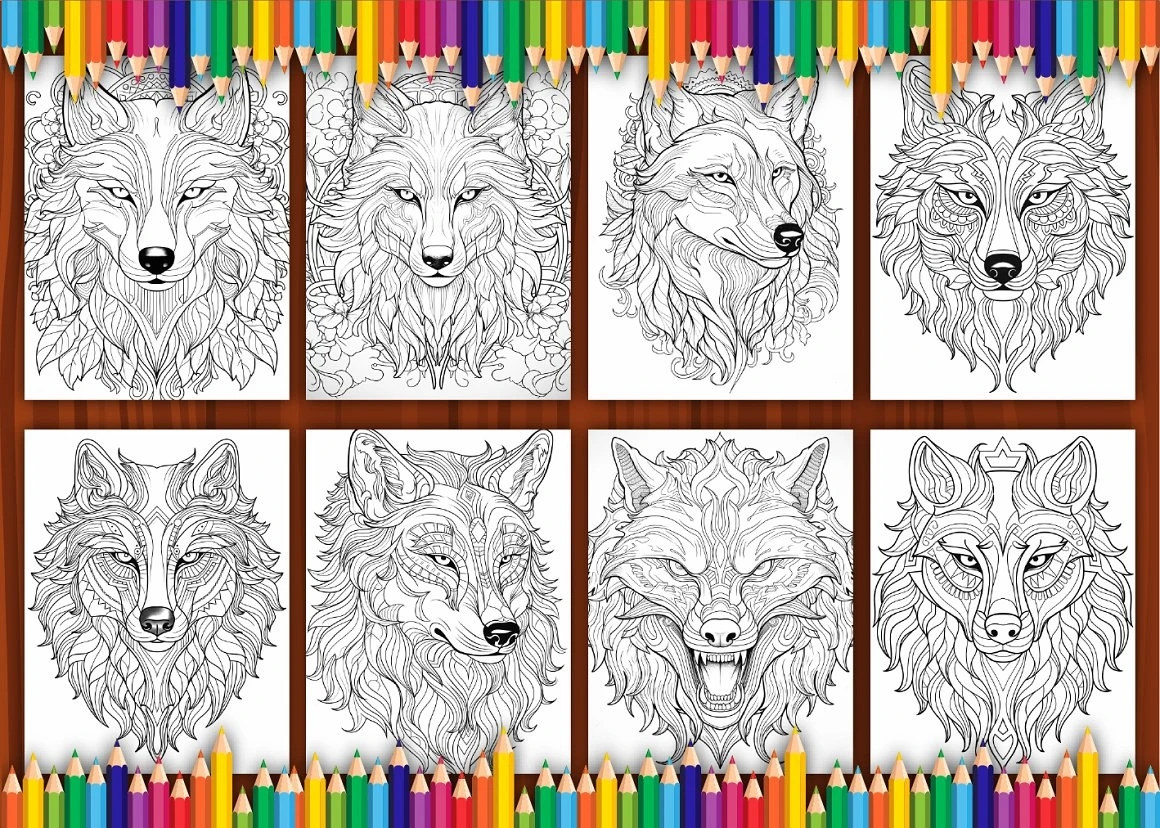 Coloring Pages, Cats, Grinning Pumpkins, Ghost, Wolf Mandala And Much More...