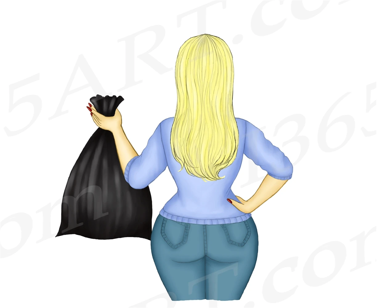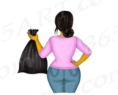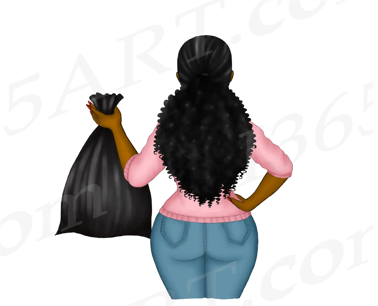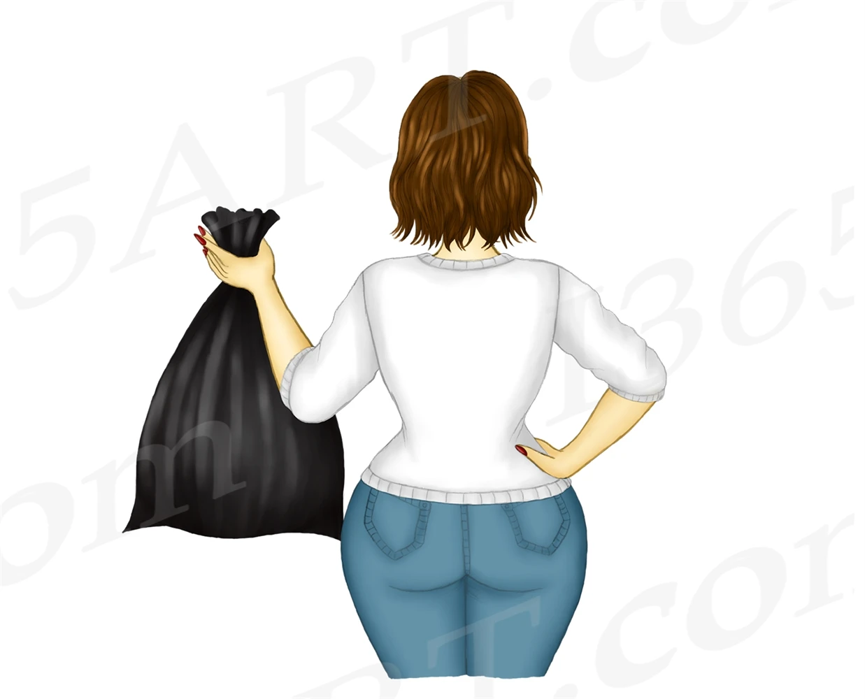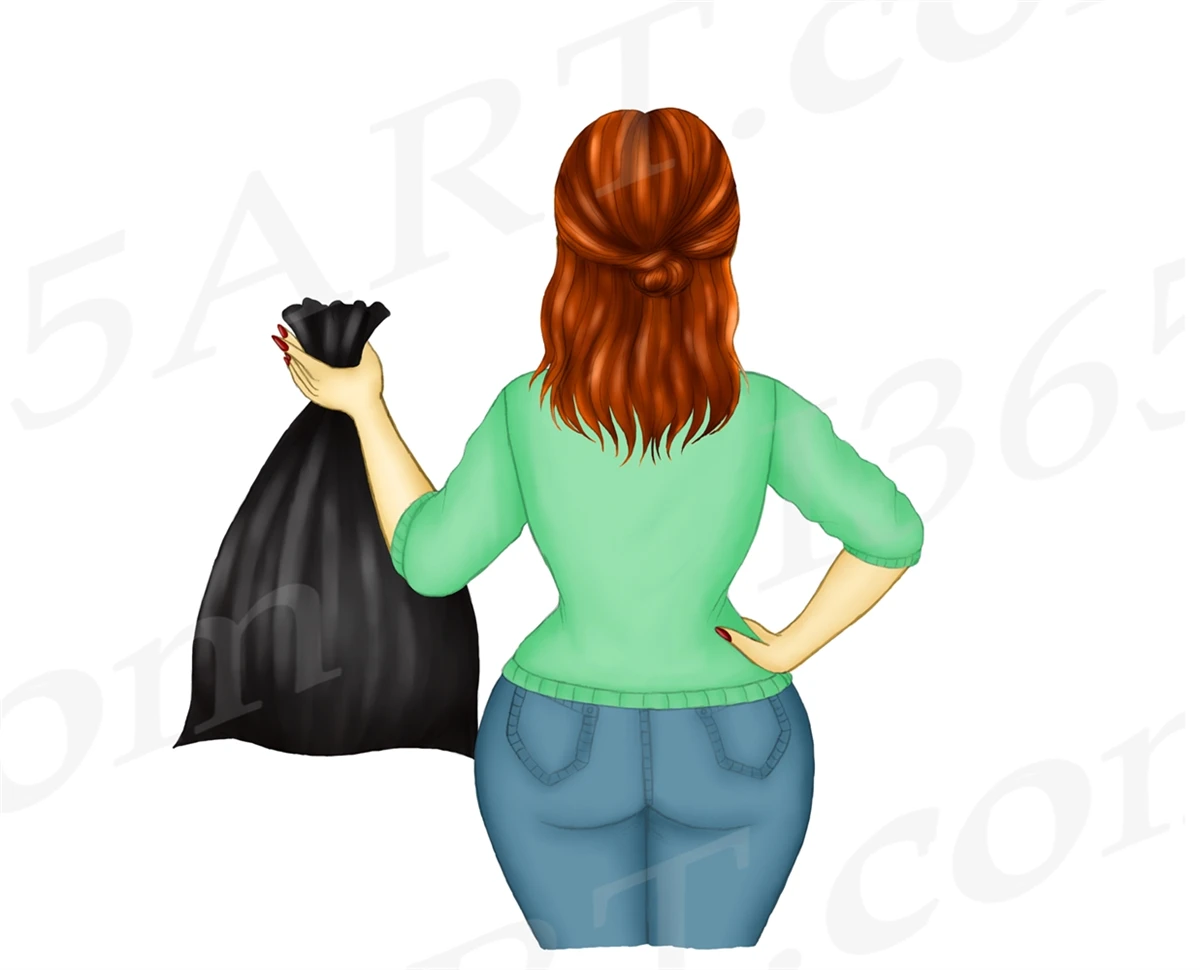 Women Taking Out Trash Day Chores Clipart Sublimation PNG