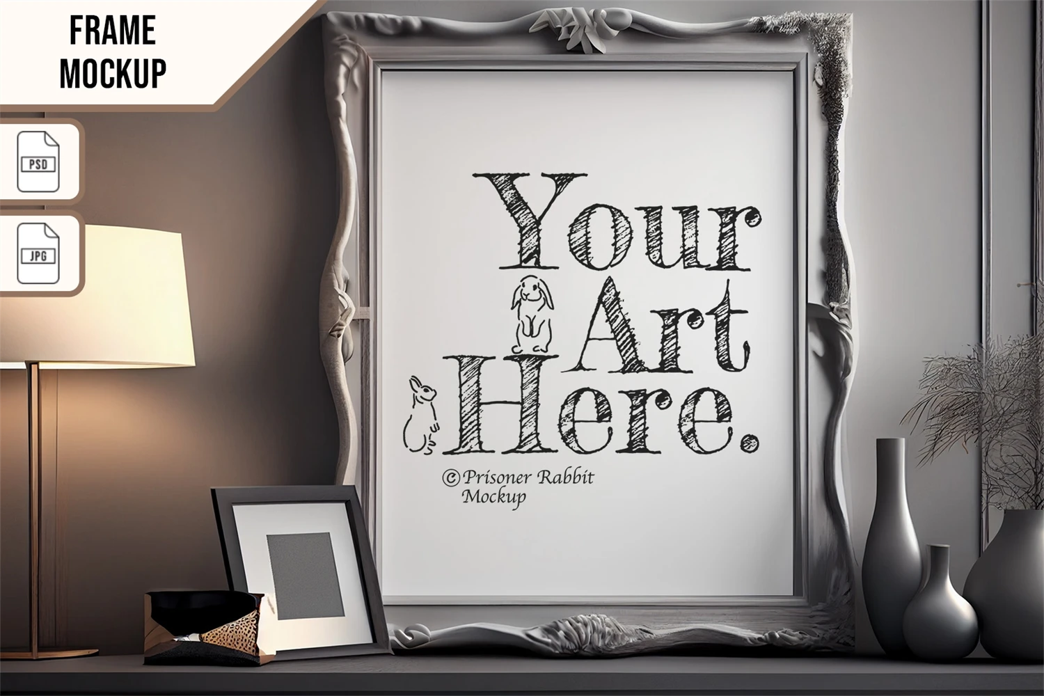 Wooden Frame mockup with Photoshop (PSD) template for drawing design, coloring page, art and graphic designs