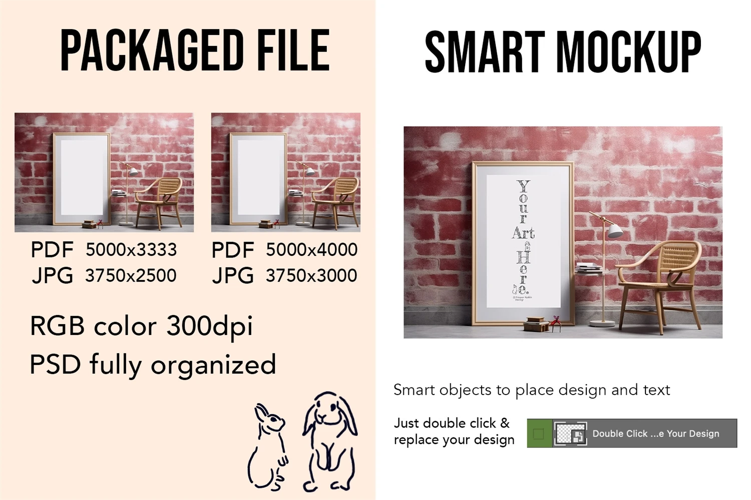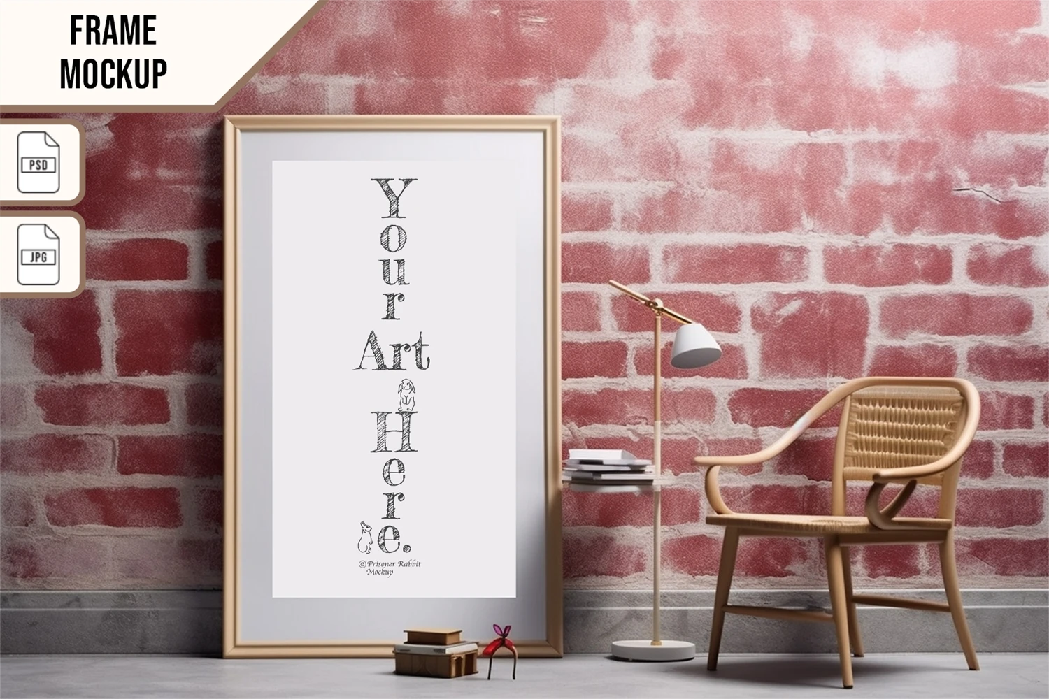 Wooden Frame mockup with Photoshop (PSD) template for drawing design, coloring page, art and graphic designs