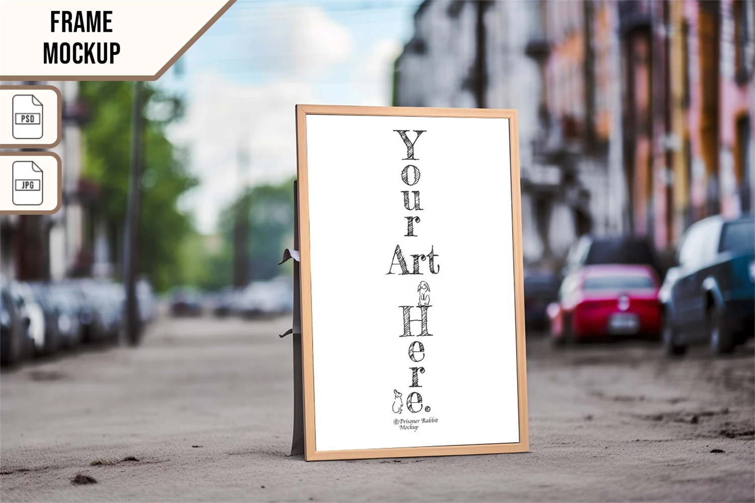 Wooden Frame mockup with Photoshop (PSD) template for drawing design, coloring page, art and graphic designs