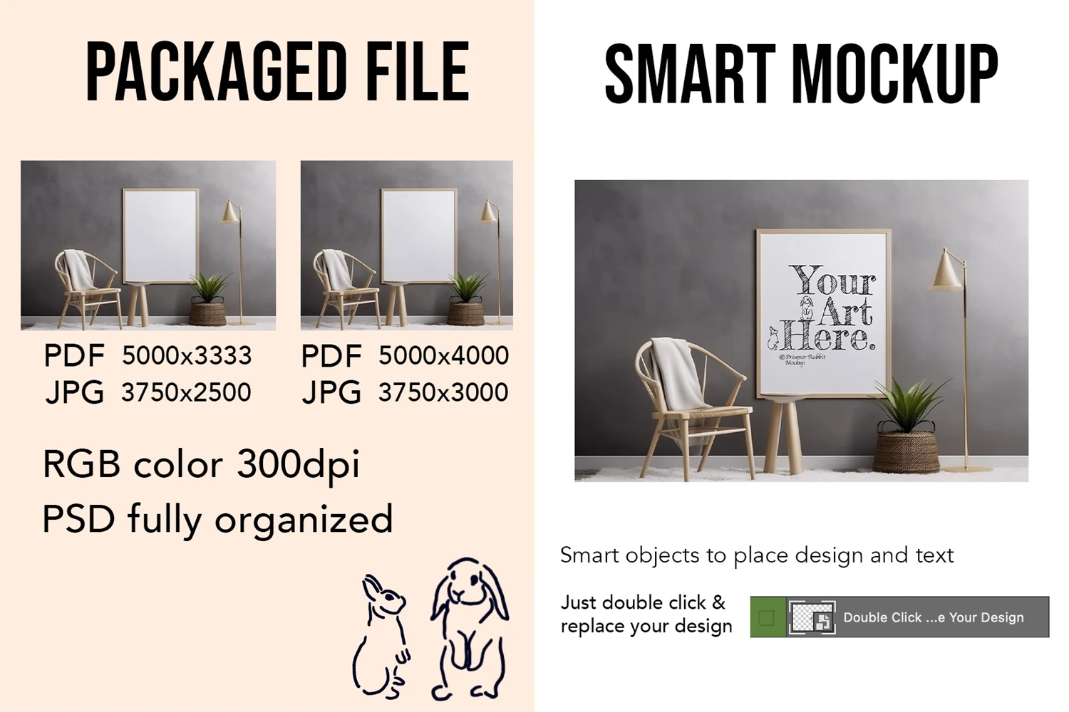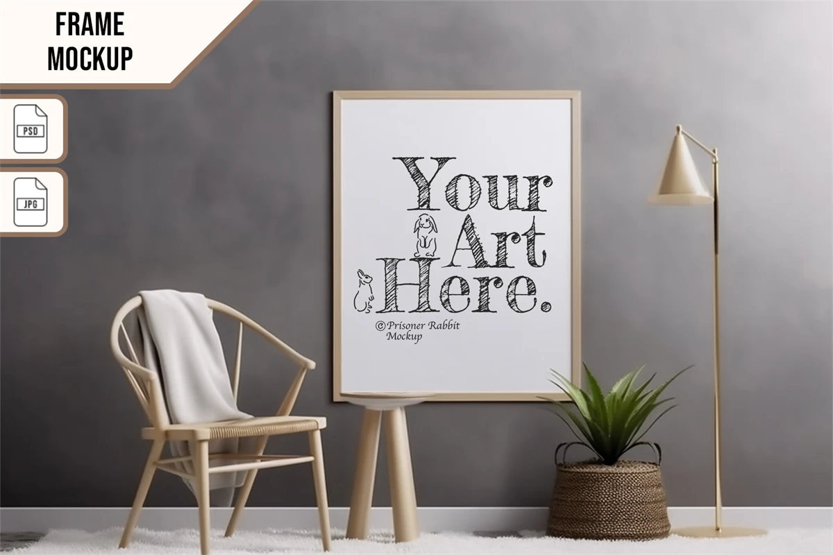 Wooden Frame mockup with Photoshop (PSD) template for drawing design, coloring page, art and graphic designs