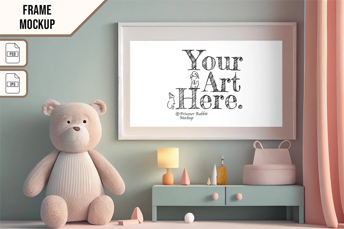 This mock-up features horizontal wooden frame displayed for home decoration.