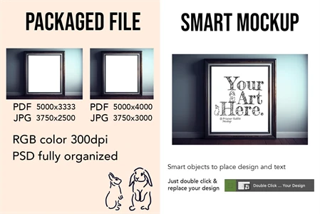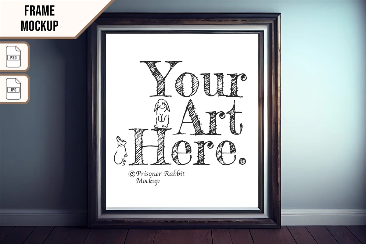 Wooden Frame mockup with Photoshop (PSD) template for drawing design, coloring page, art and graphic designs