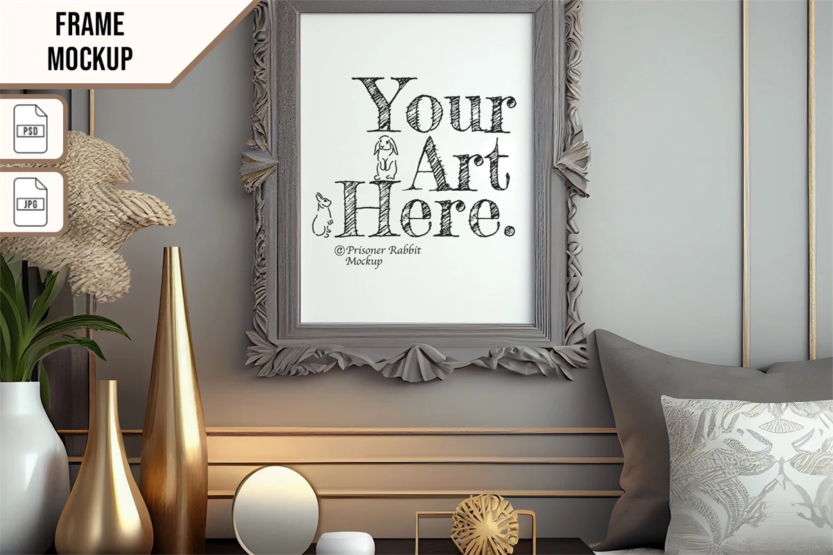 Wooden Frame mockup with Photoshop (PSD) template for drawing design, coloring page, art and graphic designs