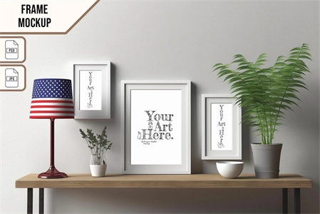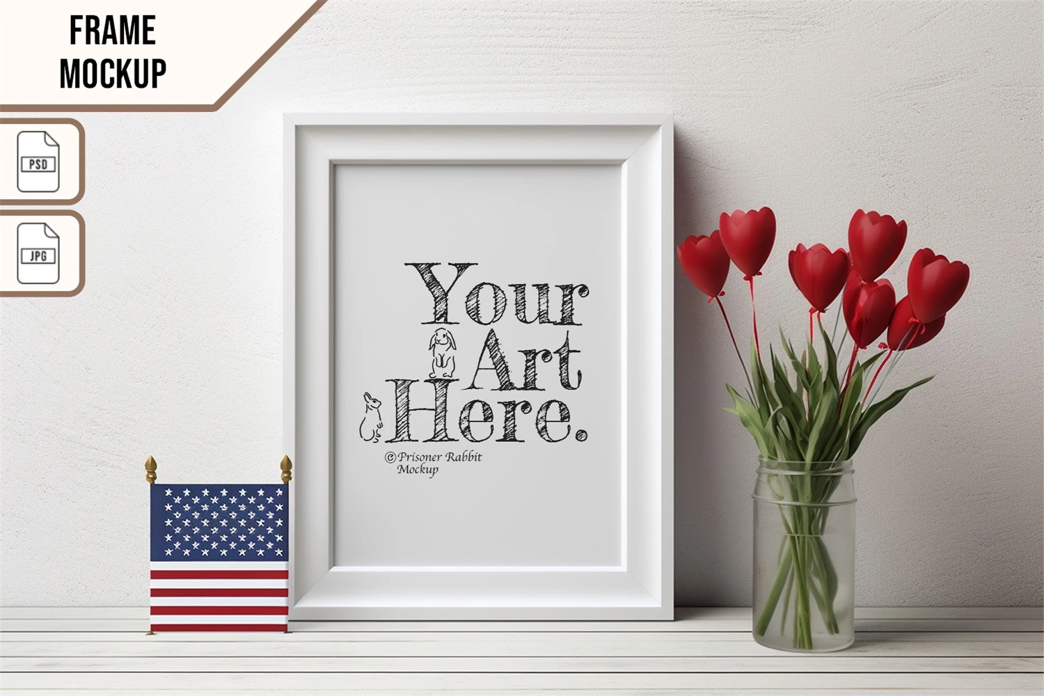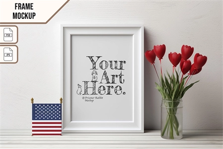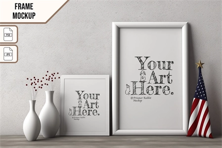 This mock-up features vertical wooden frame displayed for home decoration.