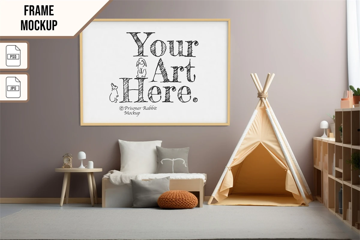 This mock-up features horizontal wooden frame displayed for home decoration.