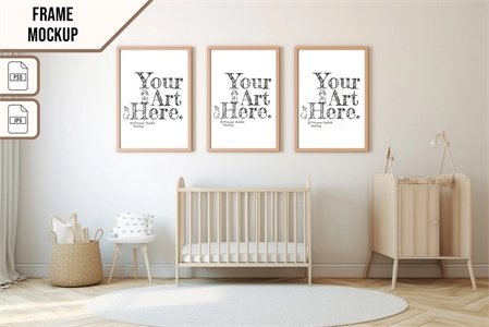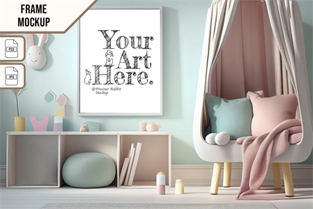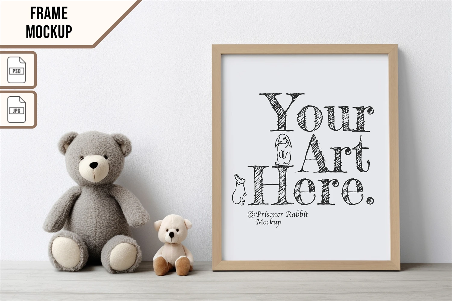 Wooden frame mockup with Photoshop (PSD) template for drawing design, coloring page, art and graphic designs